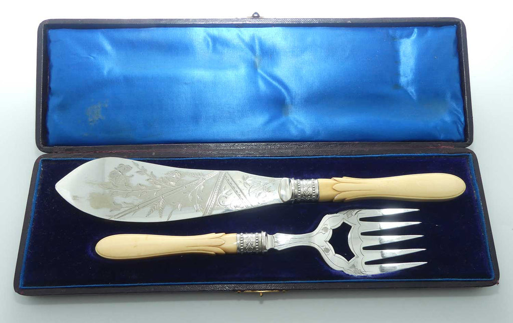 Boxed Silver Plated Edwardian era Bone Handled Fish Servers set