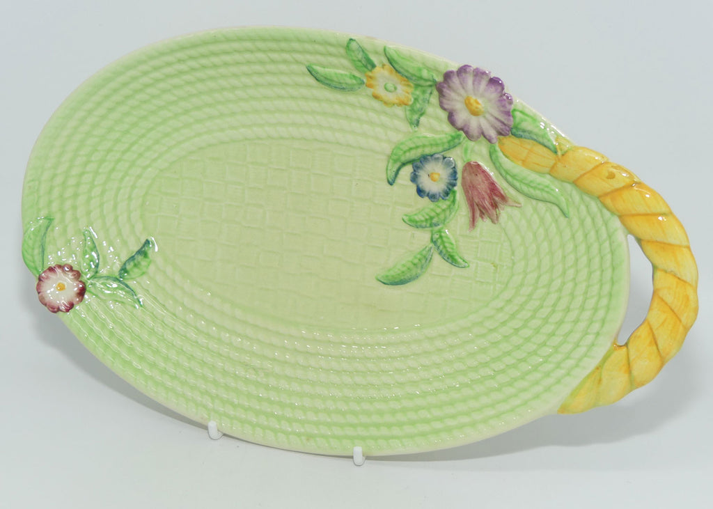 Carlton Ware Green Basket Weave and Flowers handled tray