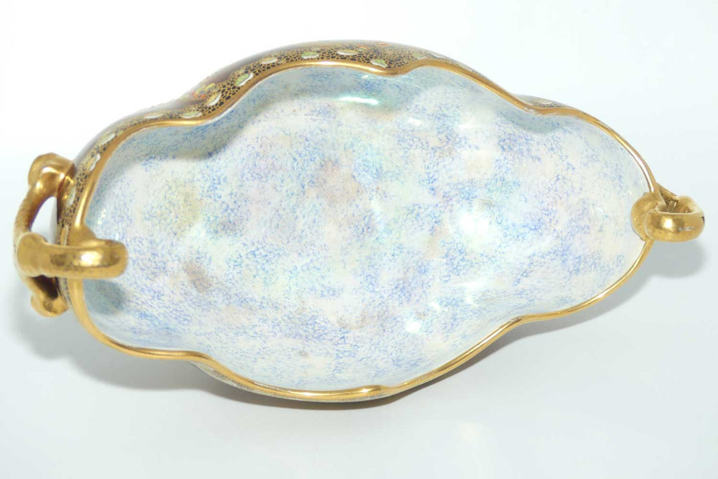 Unfortunately there is some interior soiling through age and use - this does not detract from the display of the piece [unless of course you want to look at the mottled blue lustre interior - we prefer the outside pattern!]