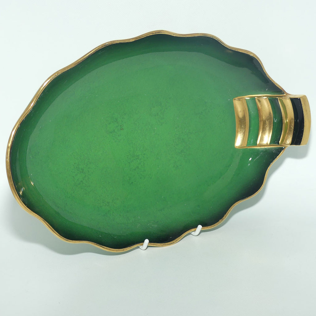 Carlton Ware Vert Royale oval bowl with fluted rim and gilt handle