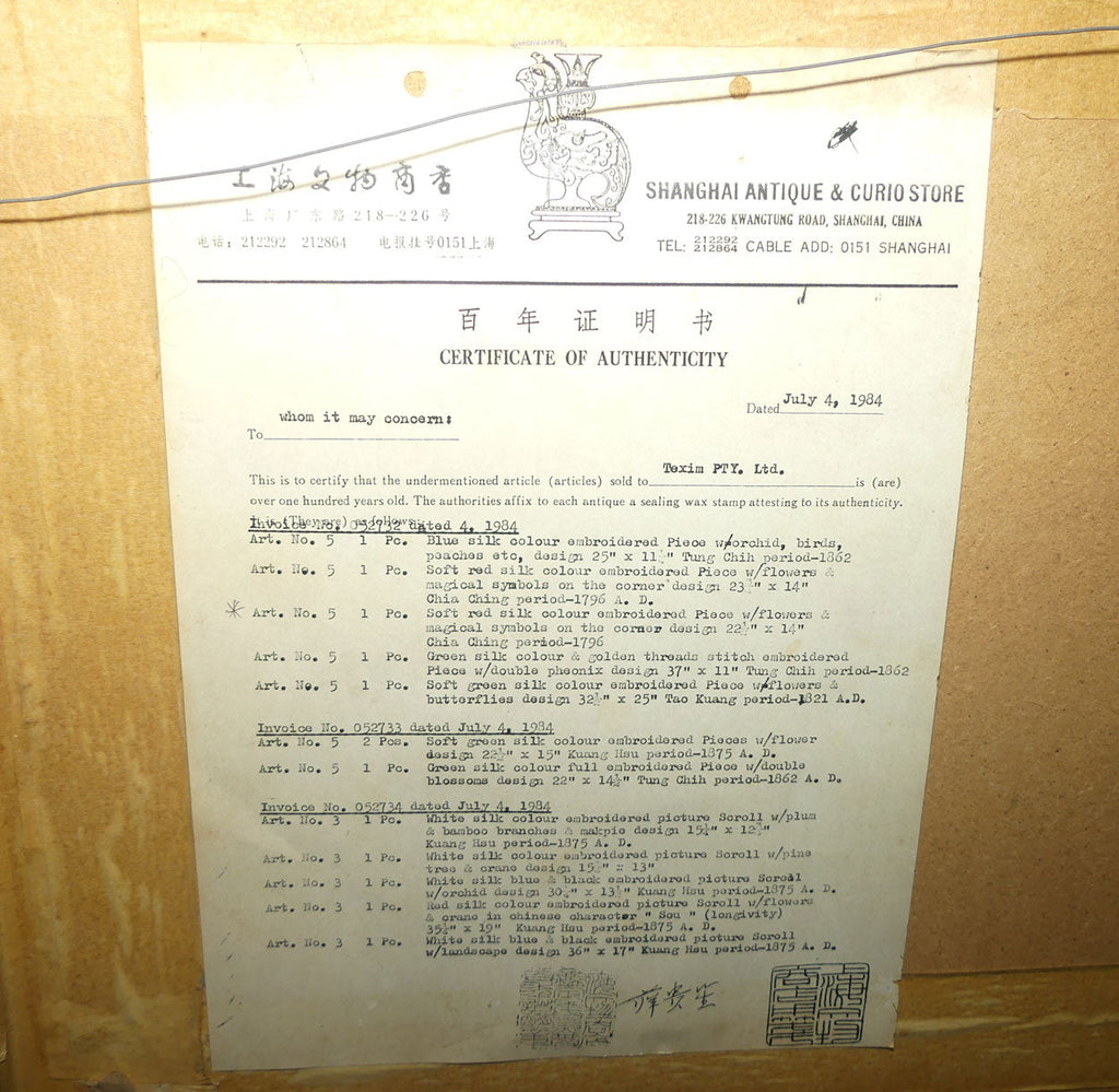 Chia Ching | Jiaqing Qing Dynasty framed Chinese Silk