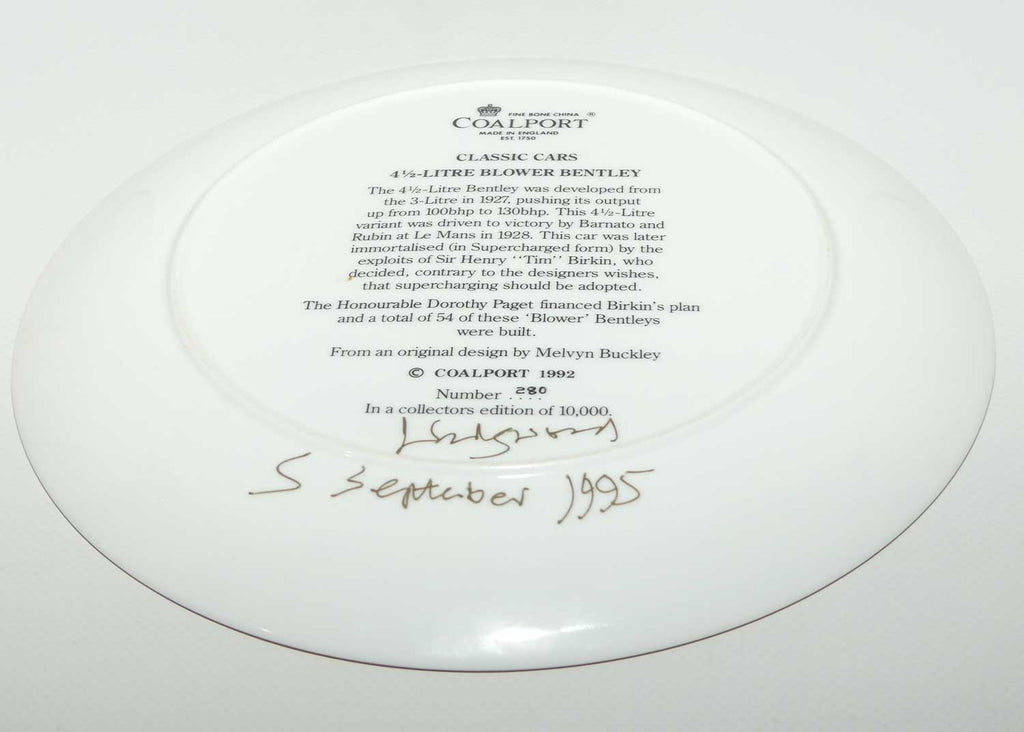 Personally signed by Lord Wedgwood in September 1995 [Wedgwood owned Coalport for a period of time]