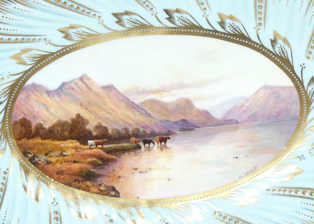 Coalport Prestige hand painted and gilt decorated Rural Scene and Cattle comport