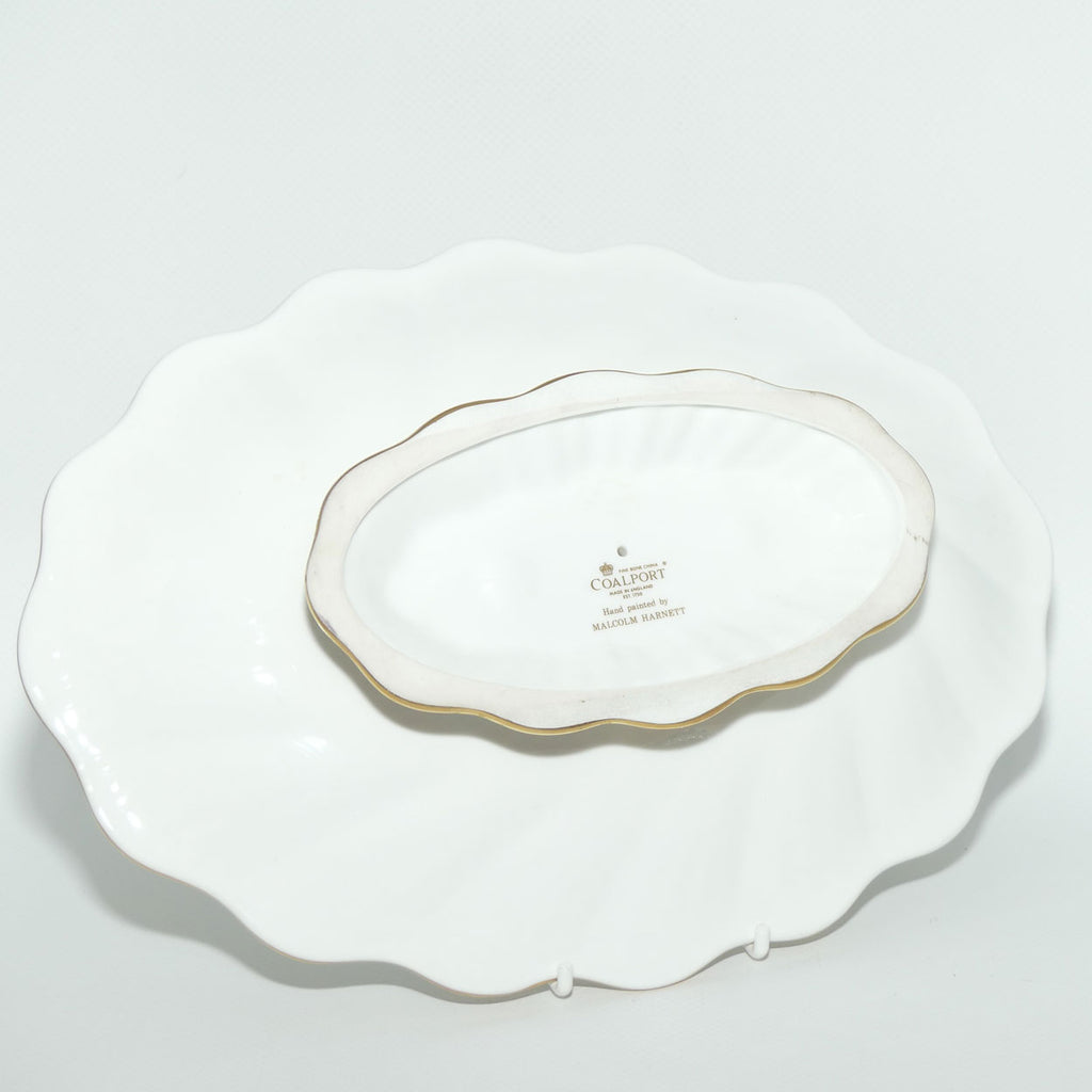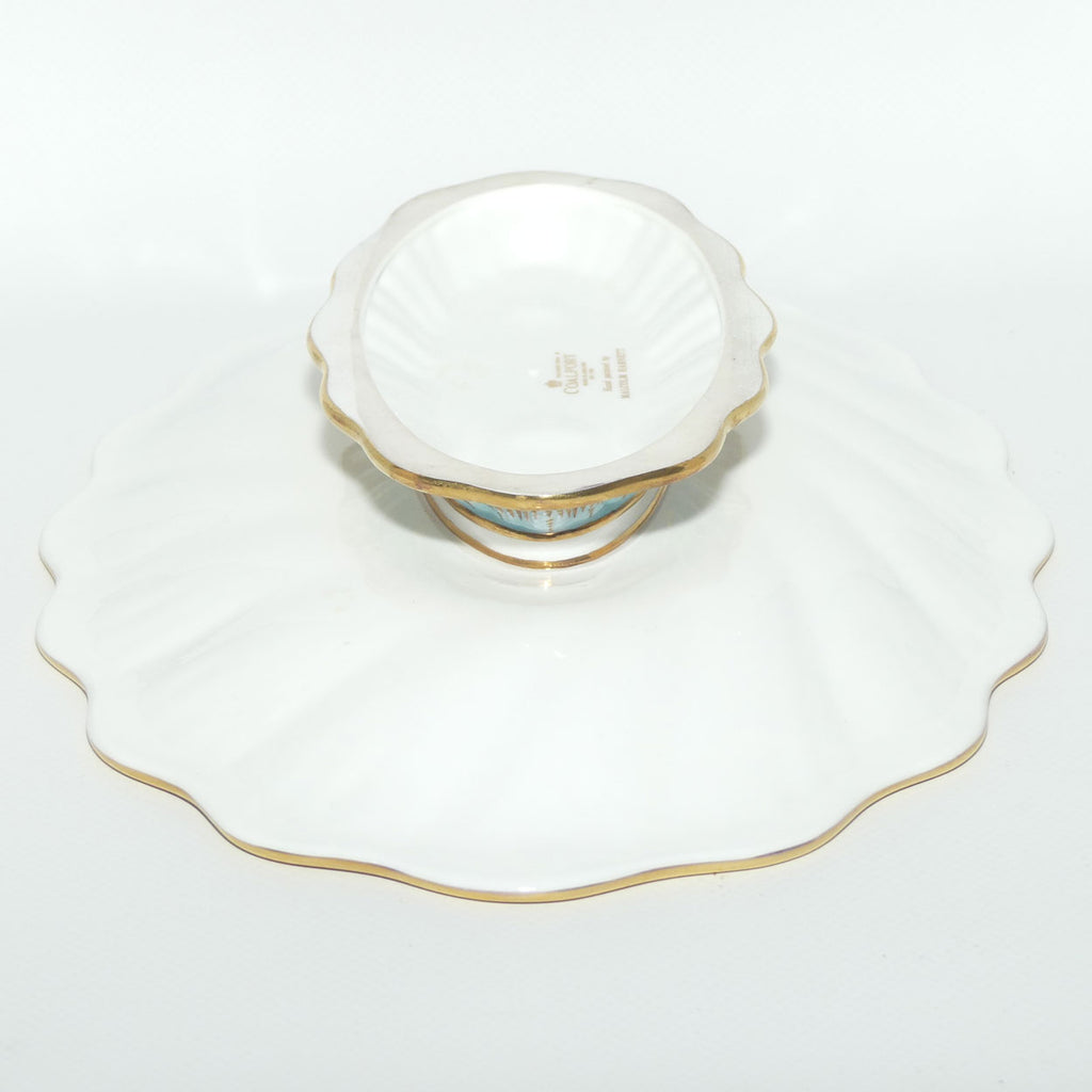 This comport represents the finest quality produced by Coalport in the mid to late 20th Century. It comes complete with a certificate attesting that it comes from the Coalport Prestige range and was decorated by Malcolm Harnett (Ceramic Artist) and George Downes (Master Gilder).