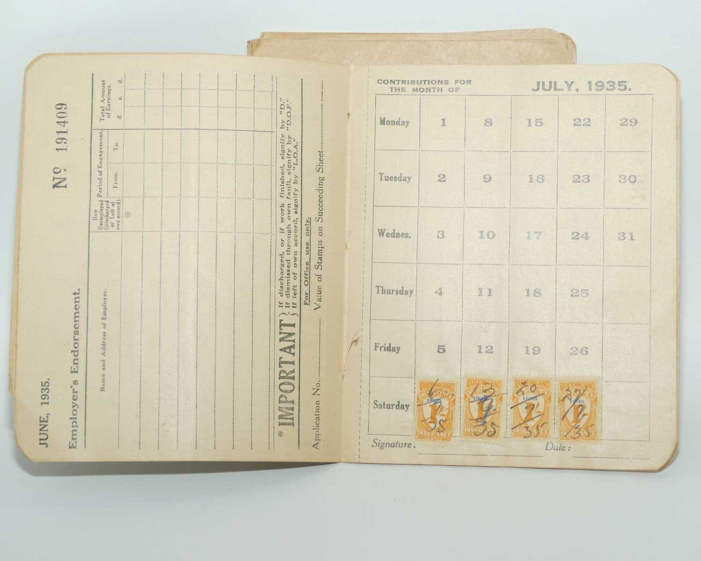 1st January to 31st December 1935 (he worked Saturdays only from 1st July until year end - all orange stamps)