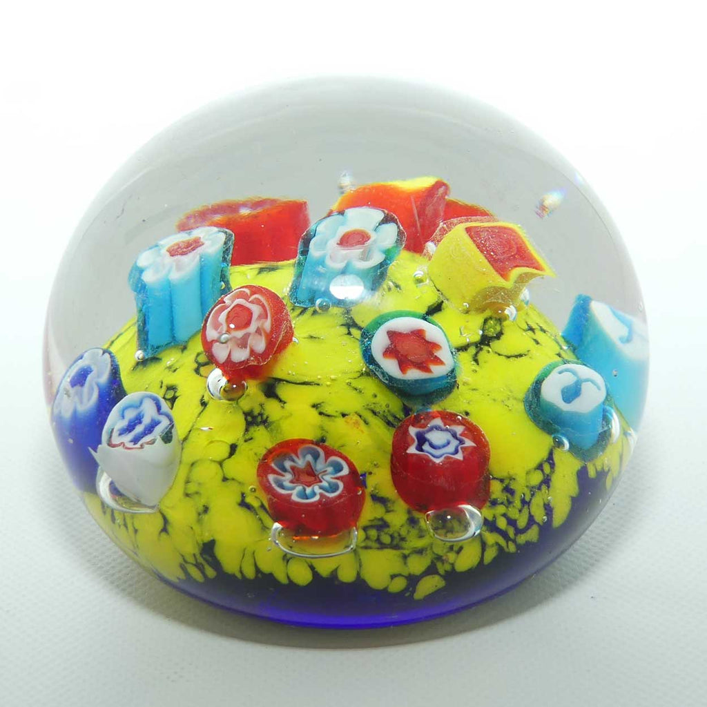 Controlled bubble with Yellow Cushion and extra large Millefiori canes paperweight