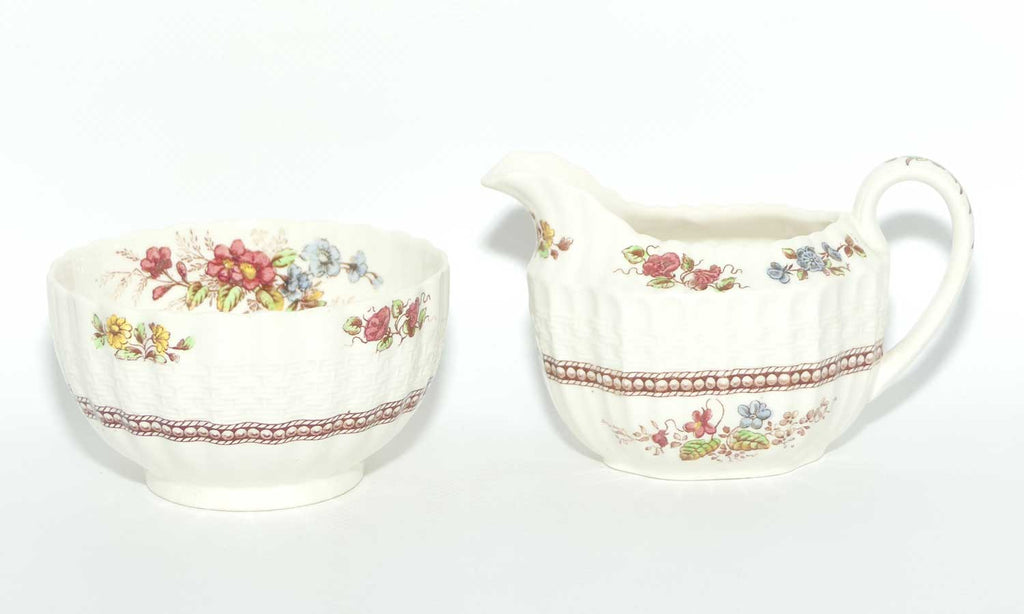 Copeland Spode Rosalie pattern coffee pot, sugar bowl and creamer