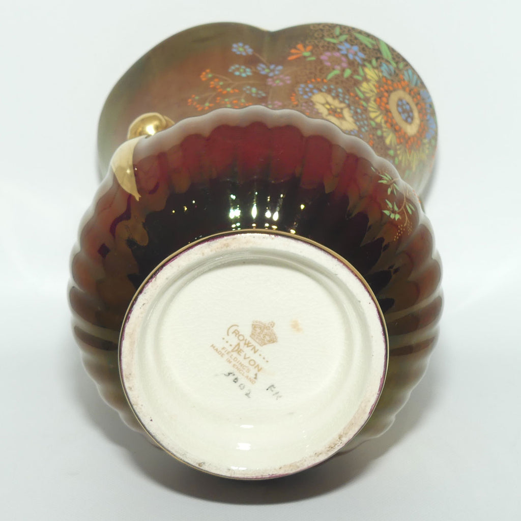 Crown Devon Fieldings Rouge Floral design twin handle vase with ribbed shape