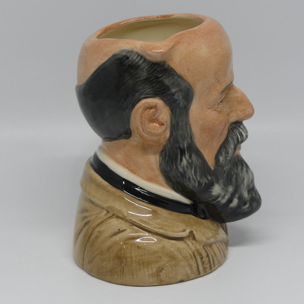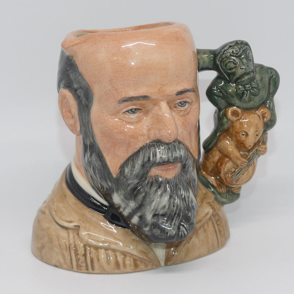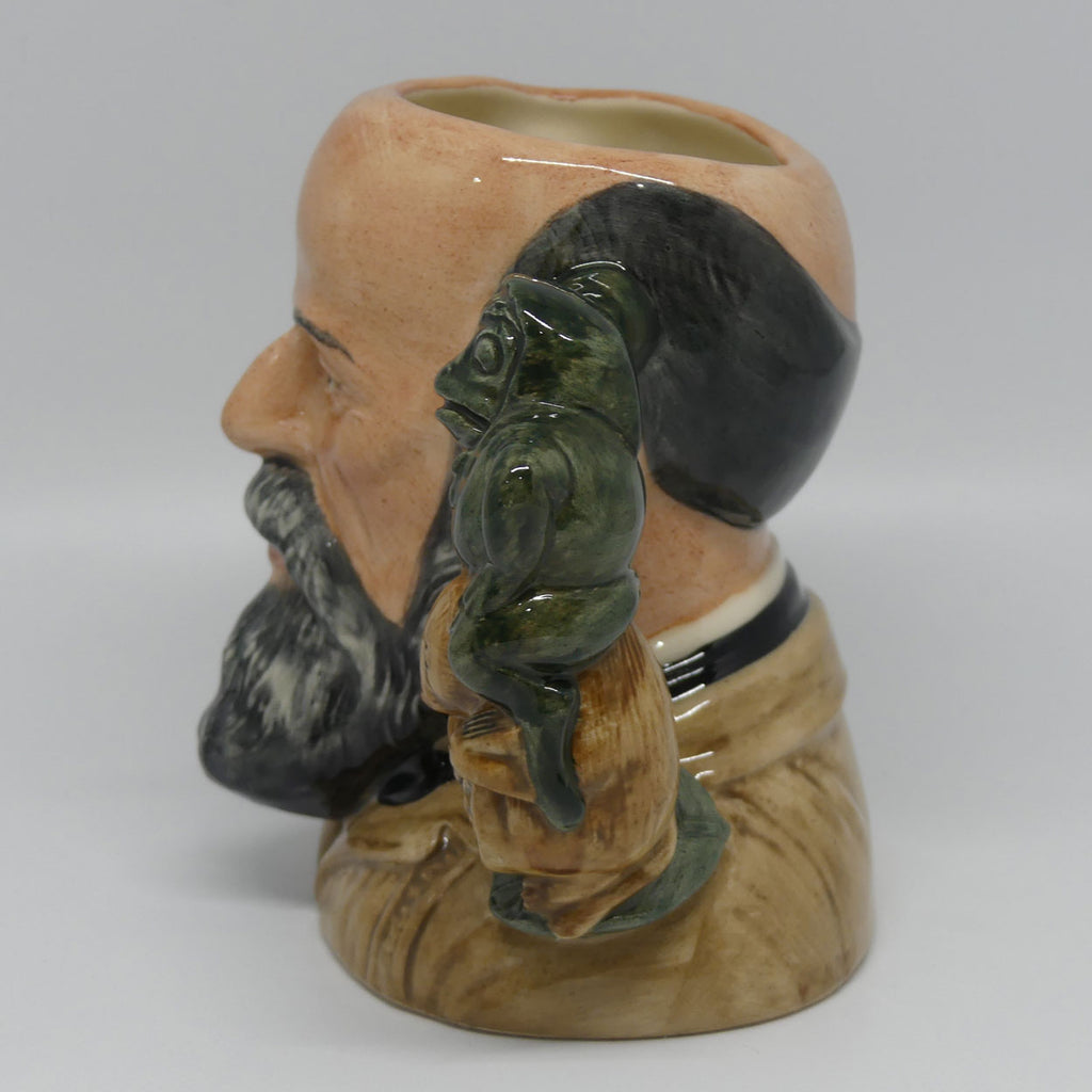 At Doulton, he produced a wide assortment of wares including vases, jugs, humorous figures and animals and larger pieces. Much of his work shows an attention to intrinsic detail that is unrivalled in the world of pottery. Two of the humorous animals he is renowned for - feature on the handle of this jug.
