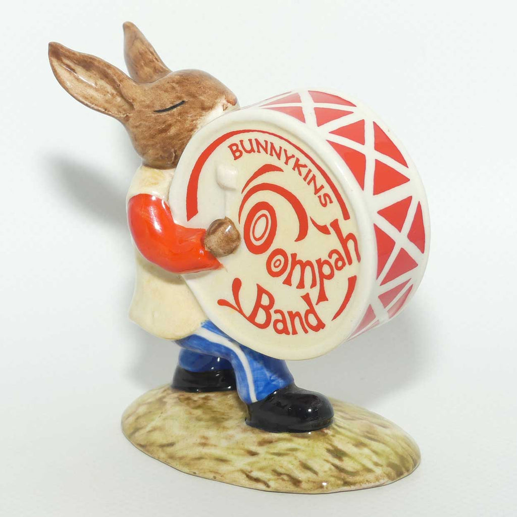 Variation Two This piece was made in two variations - the first variation, was marked with GOLDEN JUBILEE 1984 CELEBRATIONS 50 YEARS on one side of the drum. The other side says BUNNYKINS OOMPAH BAND. This piece was only made in 1984 like this marking. The other variation is this piece, with both sides of the Drum marked BUNNYKINS OOMPAH BAND - it was produced from 1985 to 1991 like this