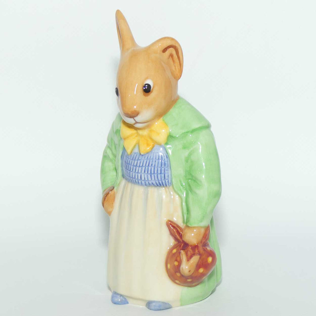DB471 Farmer Bunnykins comes from the 75th Anniversary set of 6 Royal Doulton Bunnykins figures that sought to replicate Charles Nokes original Bunnykins designs that were only produced in 1939 - 1940. These original pieces have since become the "Holy Grail" of Royal Doulton Bunnykins collecting due to their very scarce nature. As many of the original pieces were borderline un-obtainable - the 75th Anniversary set gave many collectors an opportunity to have the "original designs" in their collection.