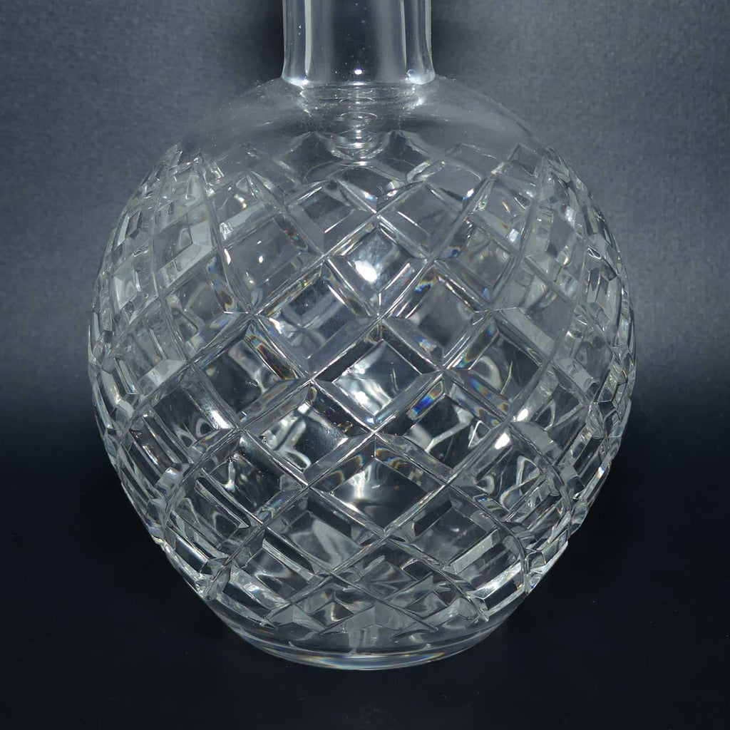 A traditional diamond cut design in this smaller decanter, with a diamond cut design also seen on the stopper