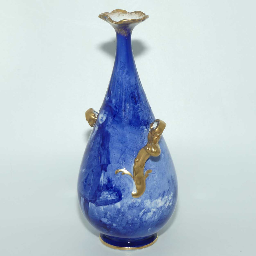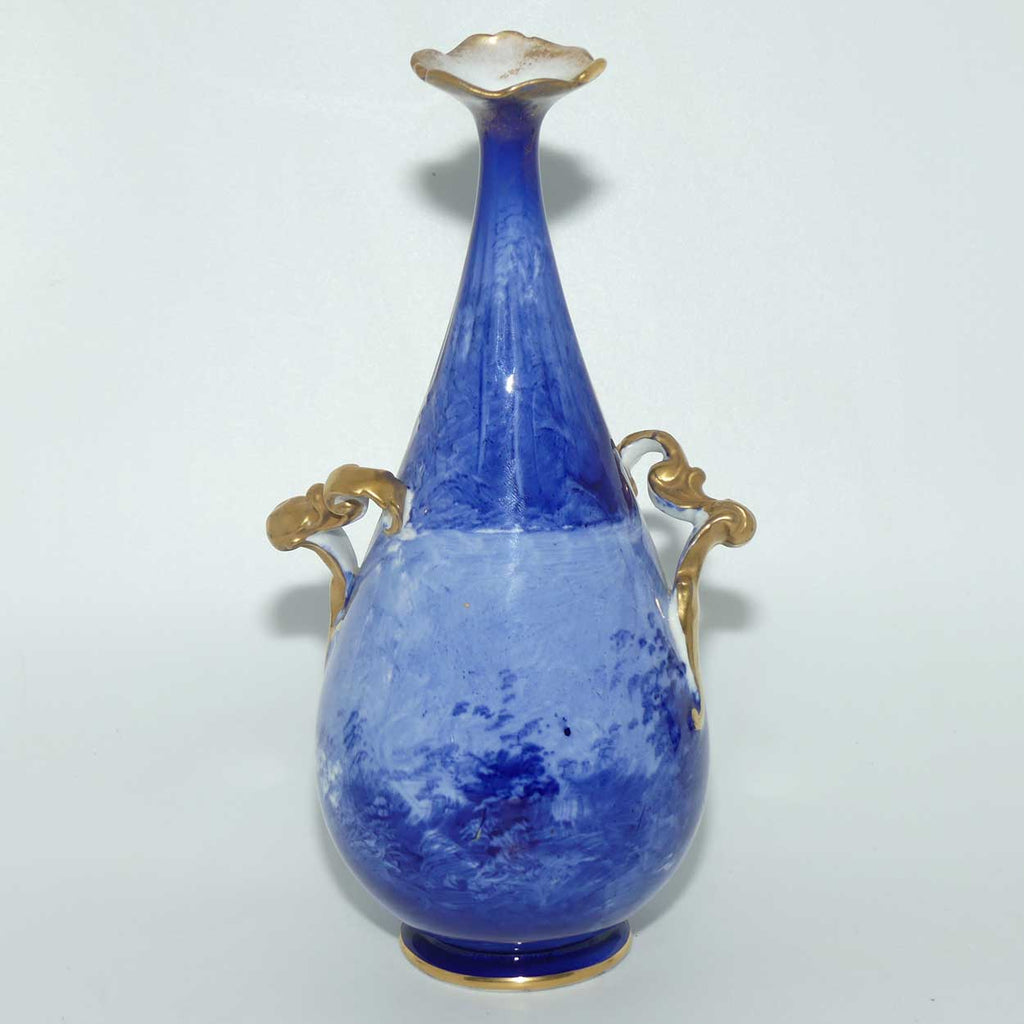 Doulton Burslem Blue Childrens narrow neck vase with fancy helix twist handles