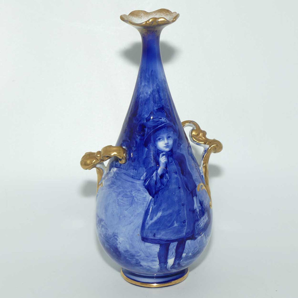 Doulton Burslem Blue Childrens narrow neck vase with fancy helix twist handles | #2