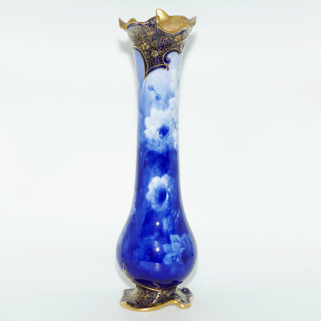 Doulton Burslem classical Blue and White hand decorated floral vase