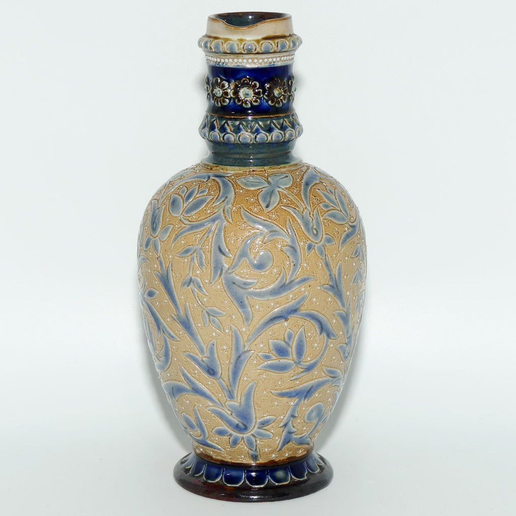 Doulton Lambeth stoneware bulbous jug with incised foliage