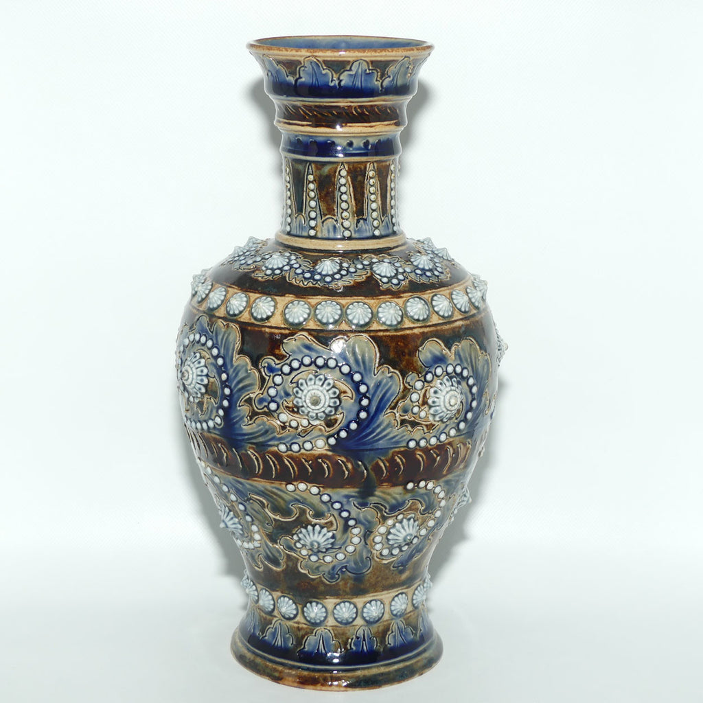 Normally (and away from the norm at Doulton) George Tinworth was the only artist in the companies employ that was allowed to sign within the body of his work, however this piece is signed on the base (I suspect it is an early example of his work)