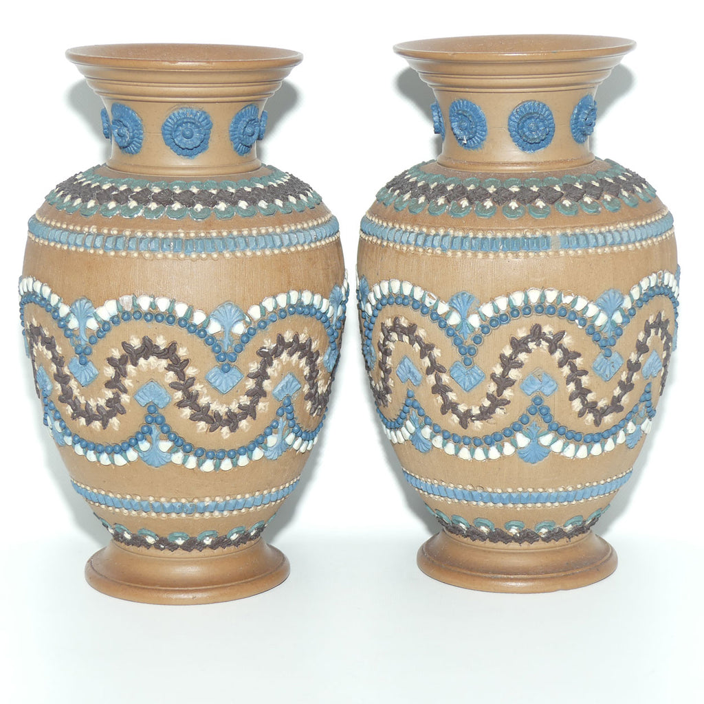 Doulton Lambeth Silicon pair of well decorated vases