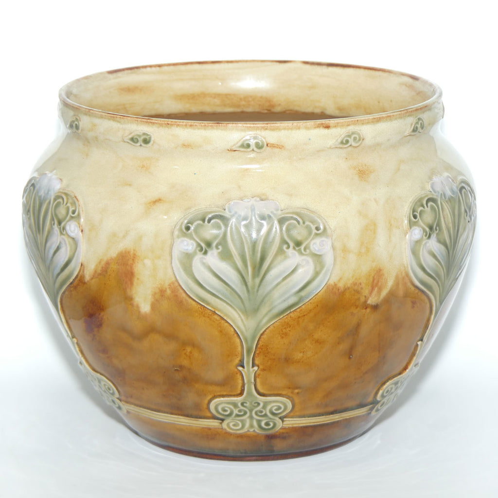 Light Brown base and Cream upper section and decorated with Art Nouveau Scrolling
