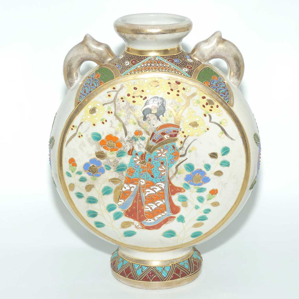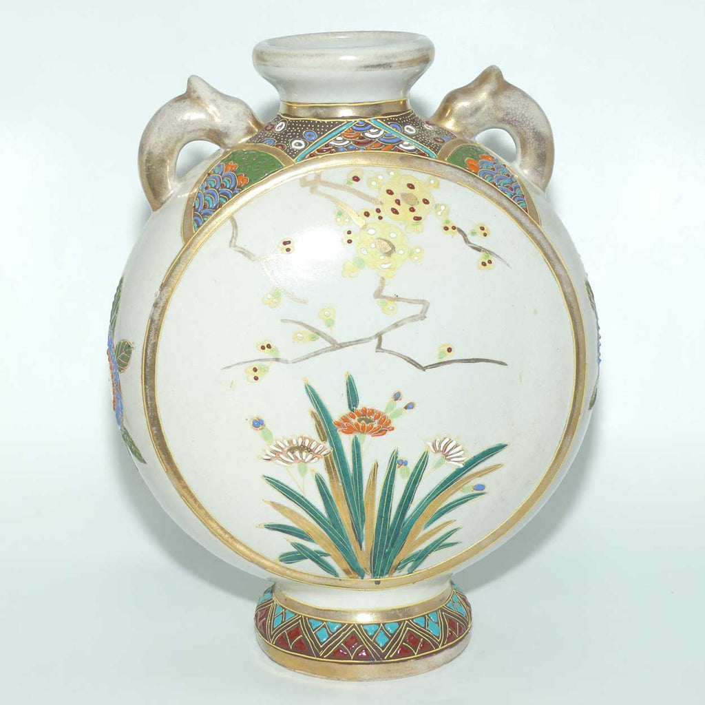 Japanese Moriage Ware twin handle Moon Flask