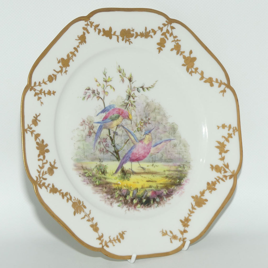 Early Australian China Painted gilt border plate decorated with Asiatic Pheasants