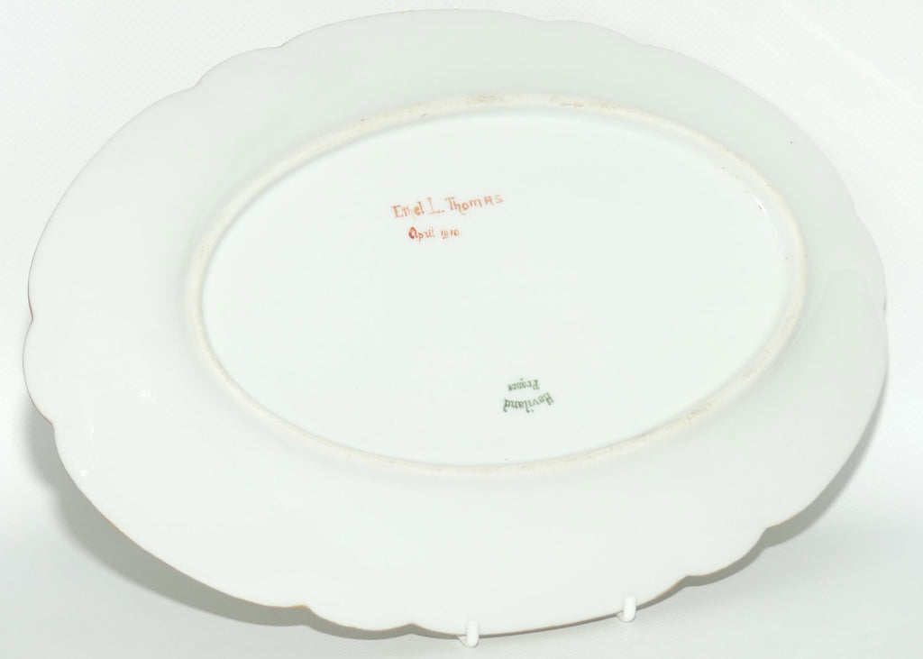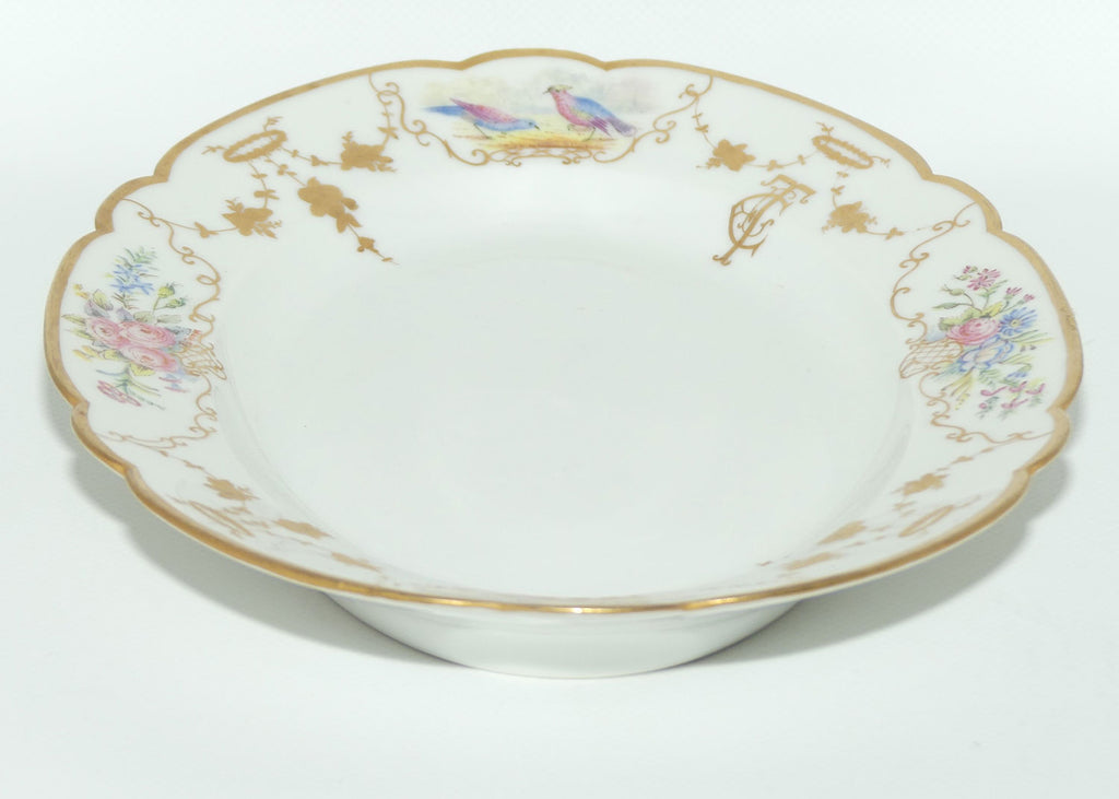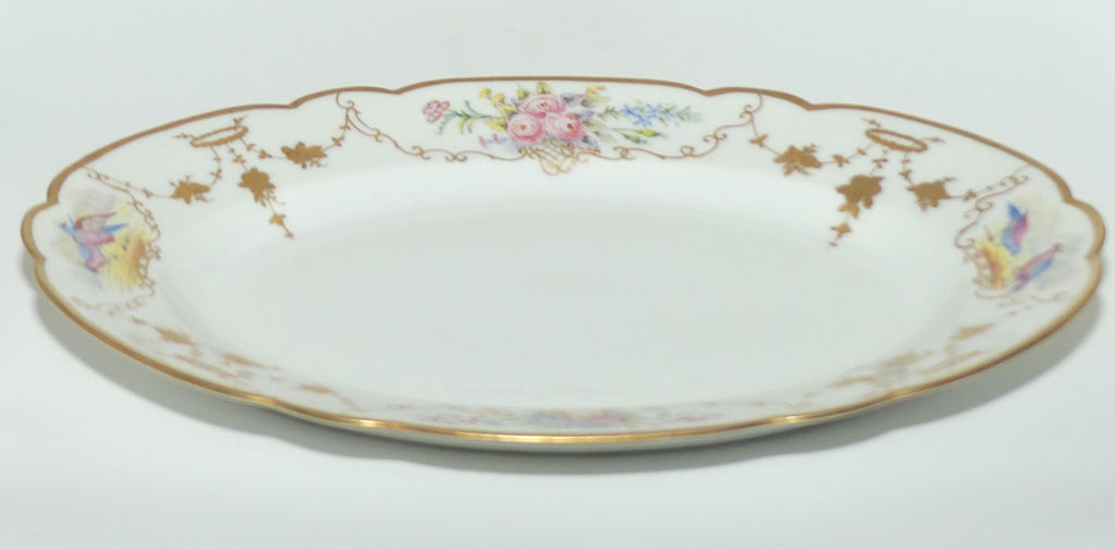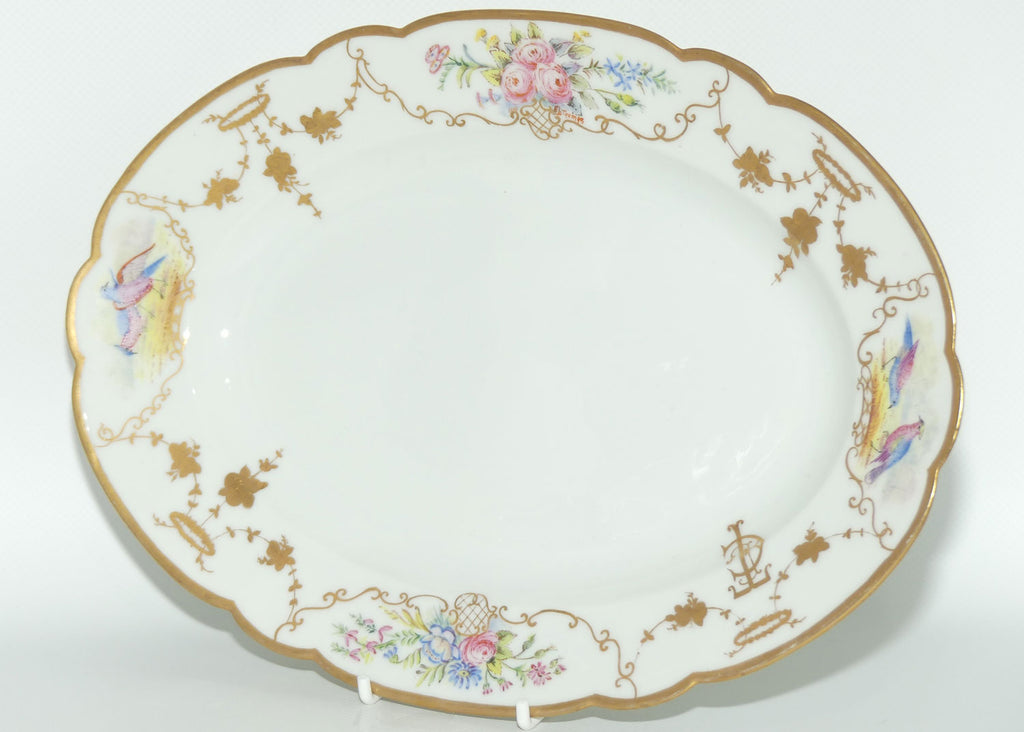 Early Australian China Painted smallmeat platter decorated with Birds, and quite refined gilding with 2 hand painted Floral Cartouche and the artists initials "crest"
