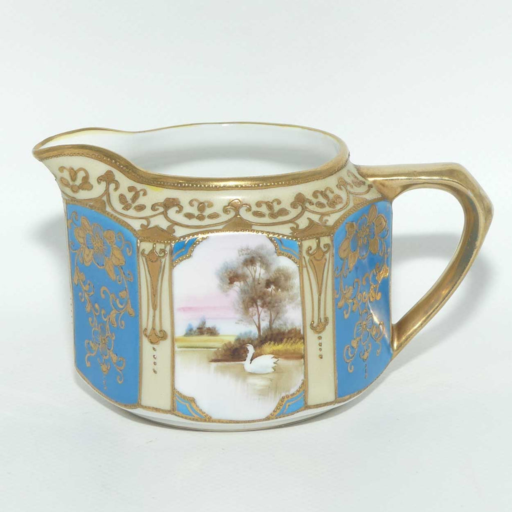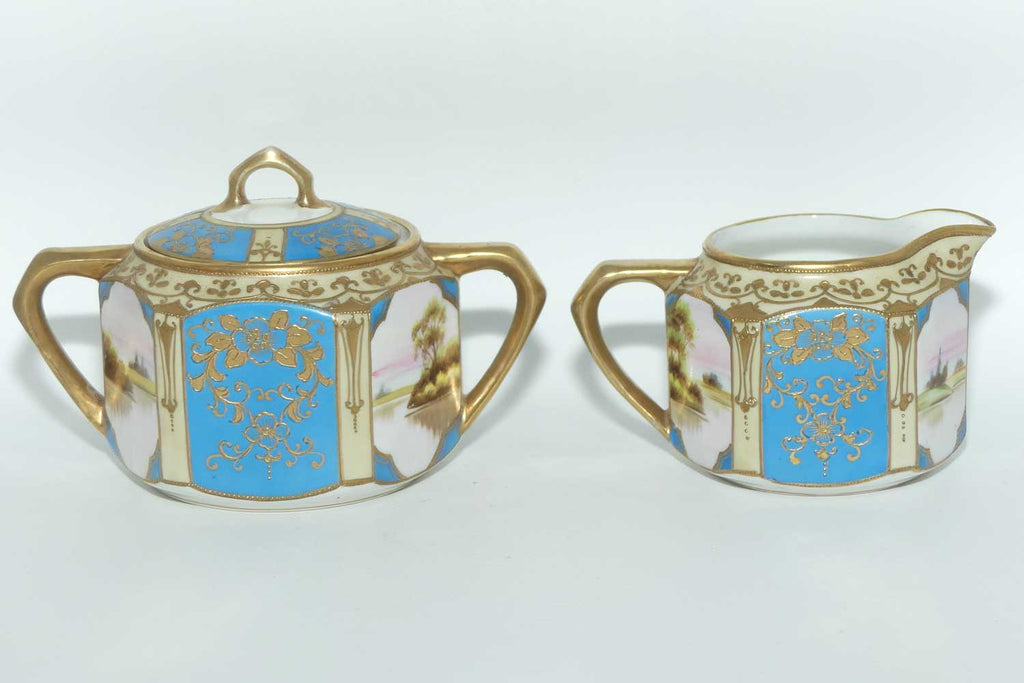 early Noritake Hand Painted and Gilt decorated Blue ground milk and sugar