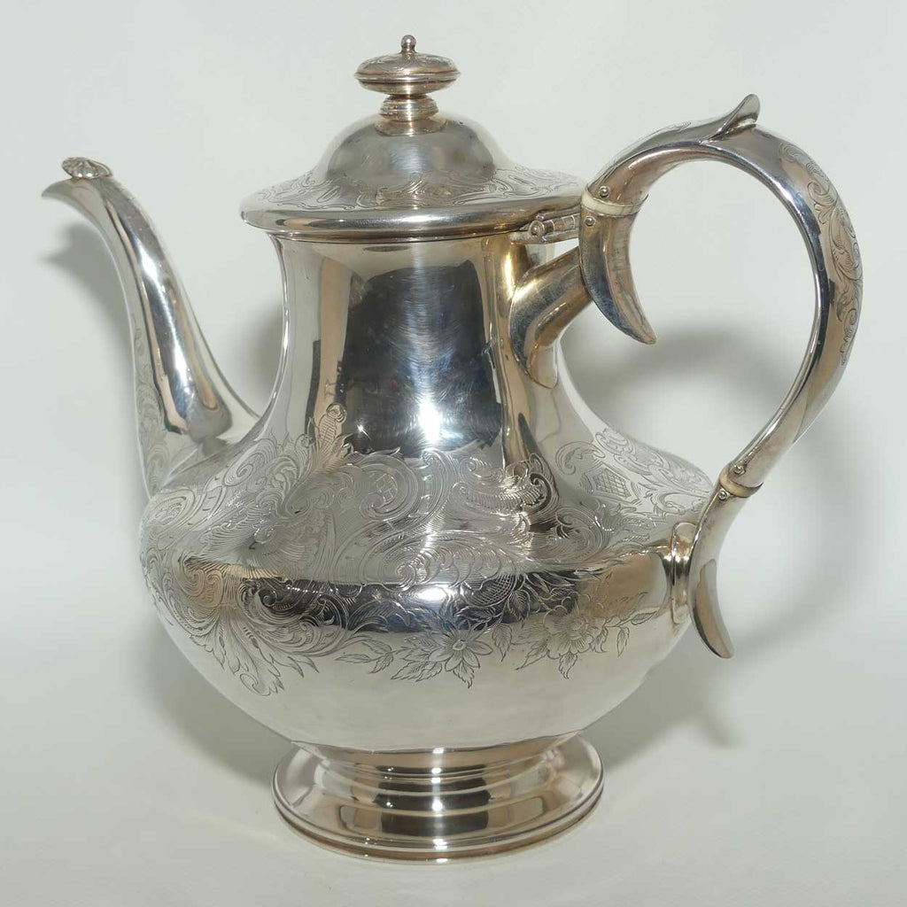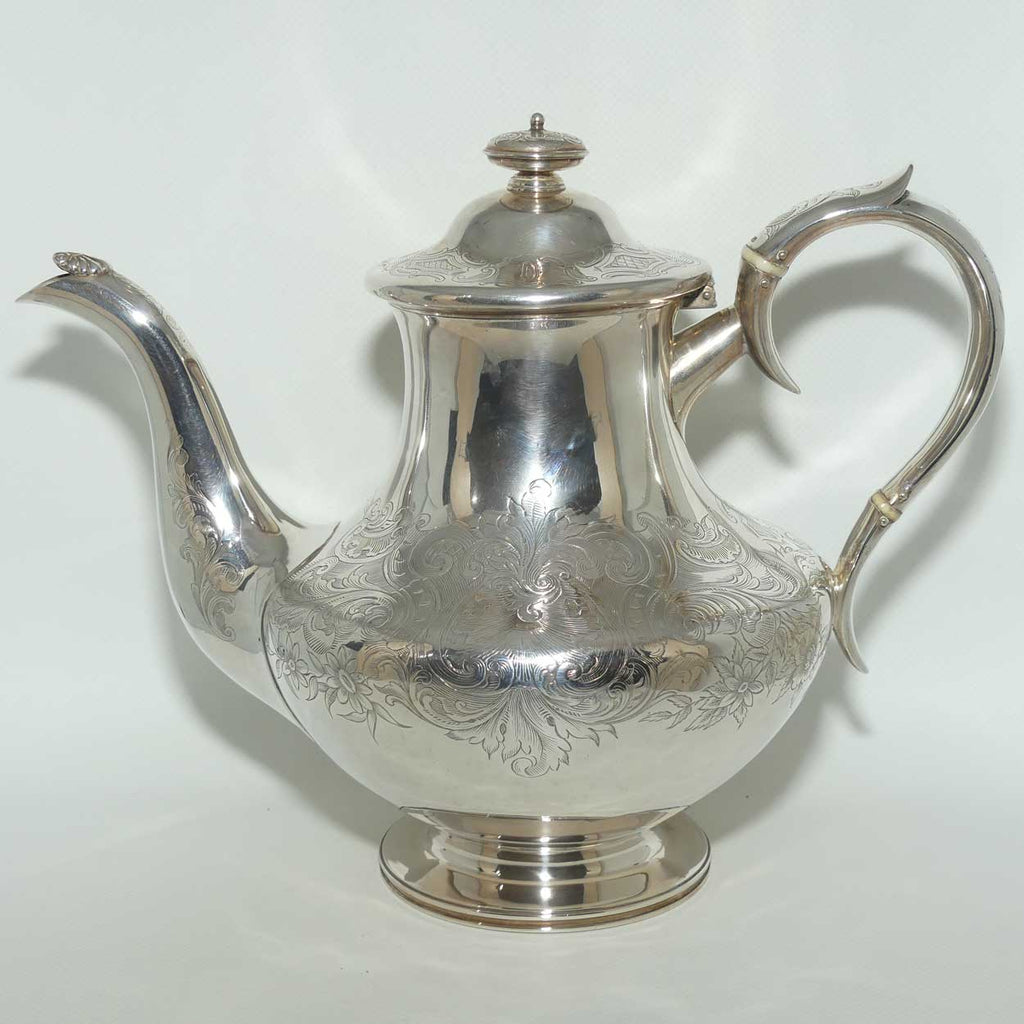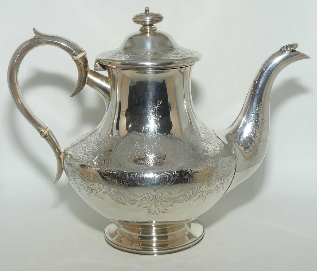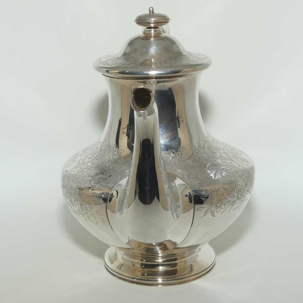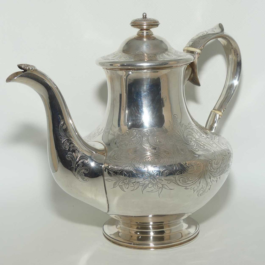 Early Victorian Sterling Silver tea pot with Bright Cut decoration