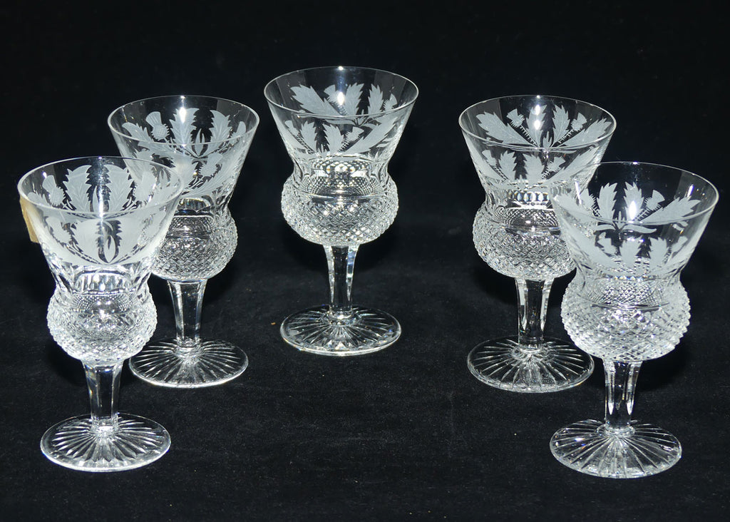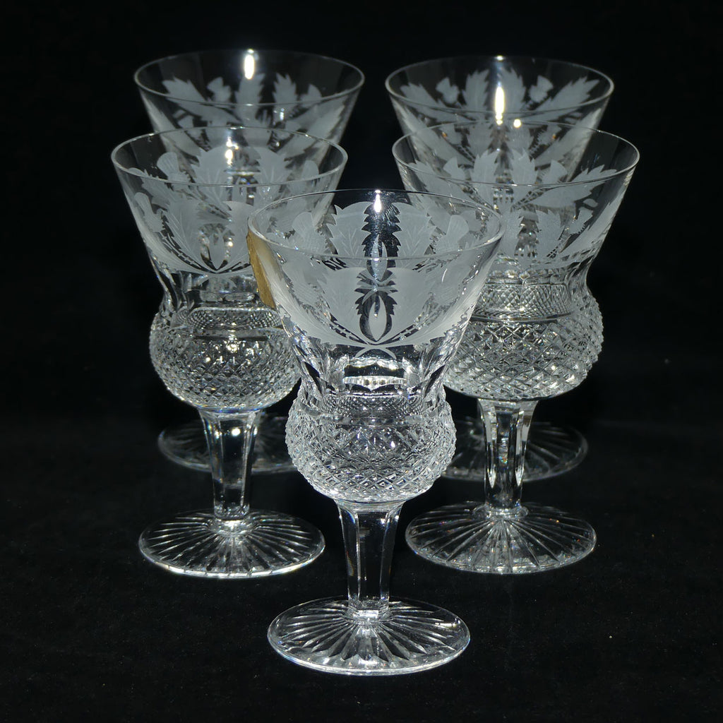Edinburgh Crystal Thistle pattern set of 5 Sherry or Wine Glasses