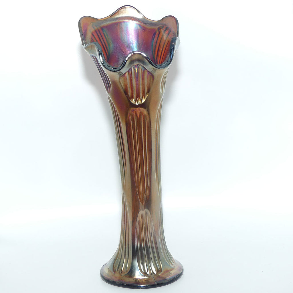 This 28cm+ tall vase 6 point tip vase has quite good colour - it is an Amethyst Carnival, when held to the light the base colour of the glass is amethyst. There is no pattern to the base