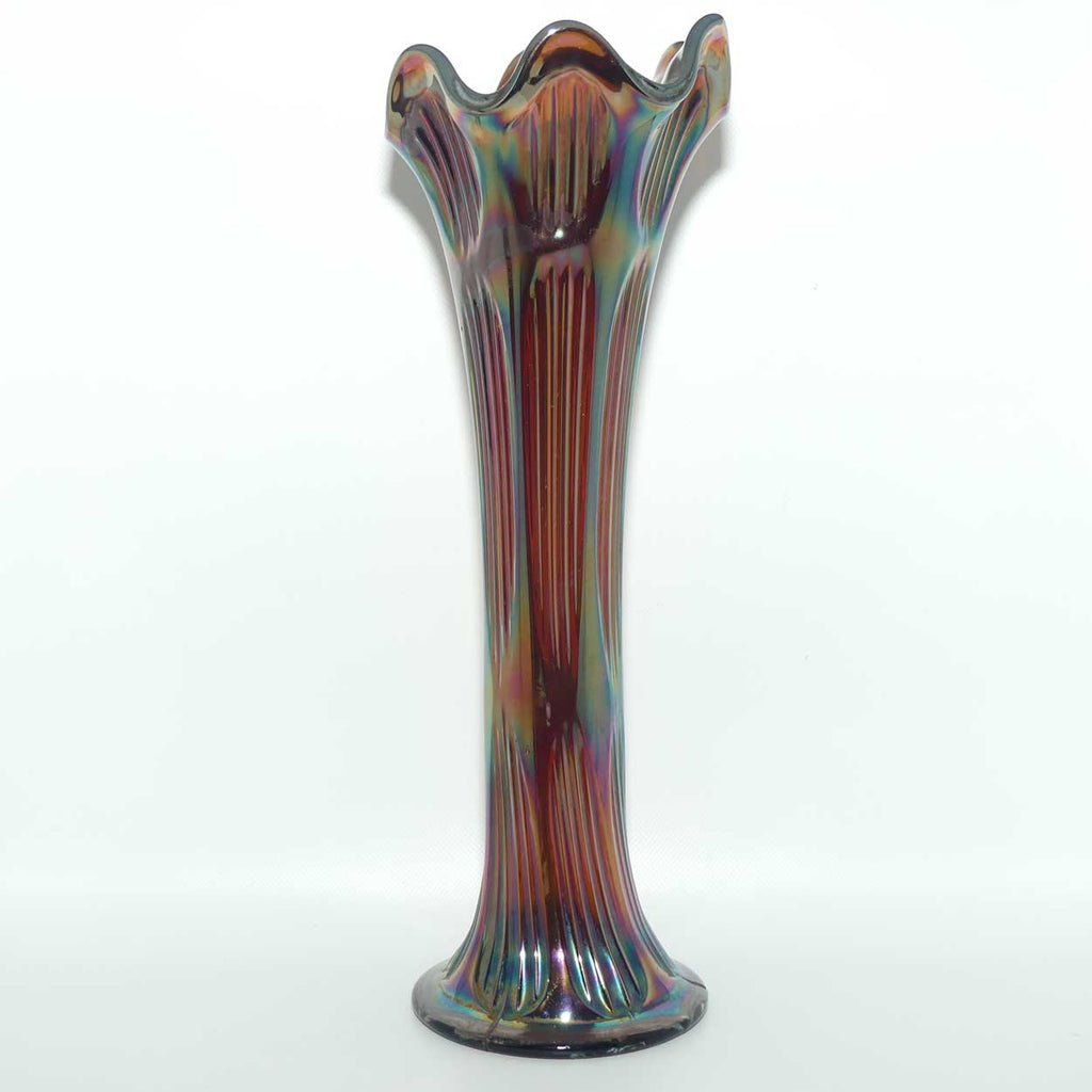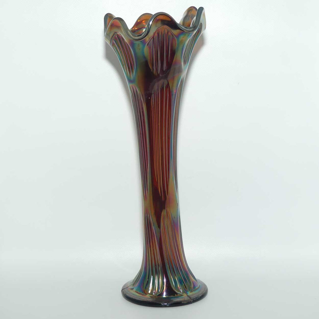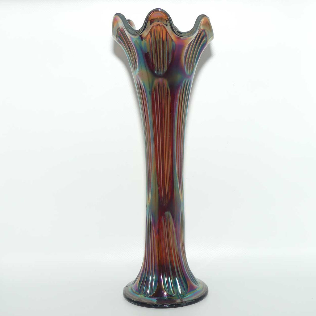 This 29cm tall vase 6 point tip vase has quite good colour - it is an Amethyst Carnival, when held to the light the base colour of the glass is amethyst. There is no pattern to the base