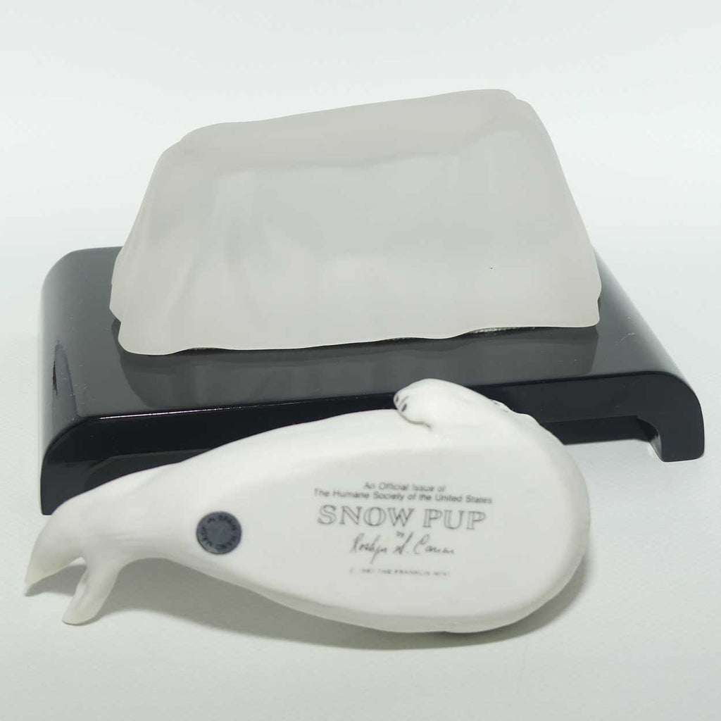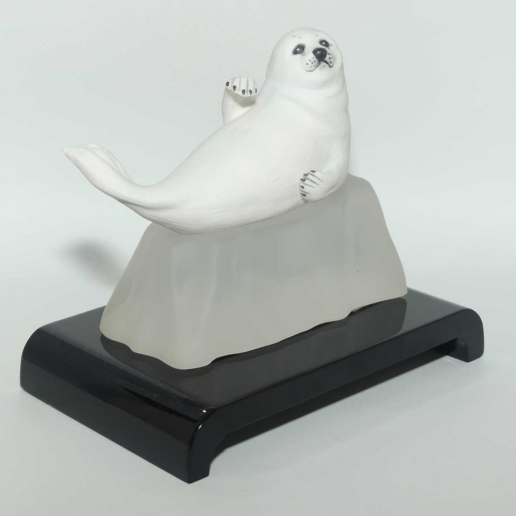 The porcelain seal sits on an acid etched glass base - which is complimented by a black lacquered plinth