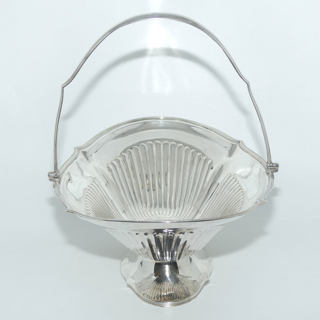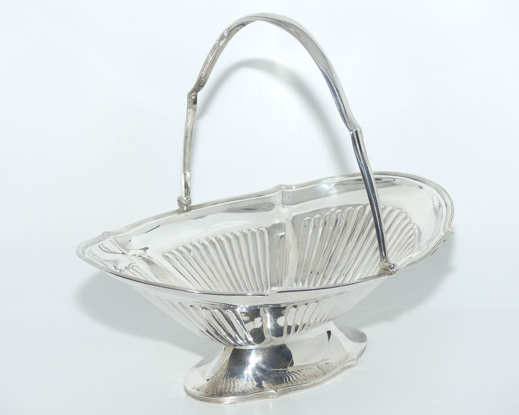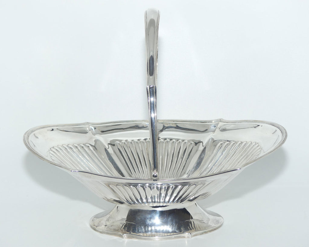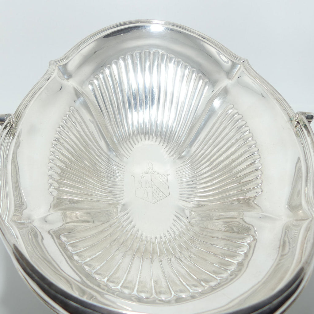 A classical George III basket with a gadrooned decoration and a reeded border, and a full armorial at centre and a small armorial at centre of handle
