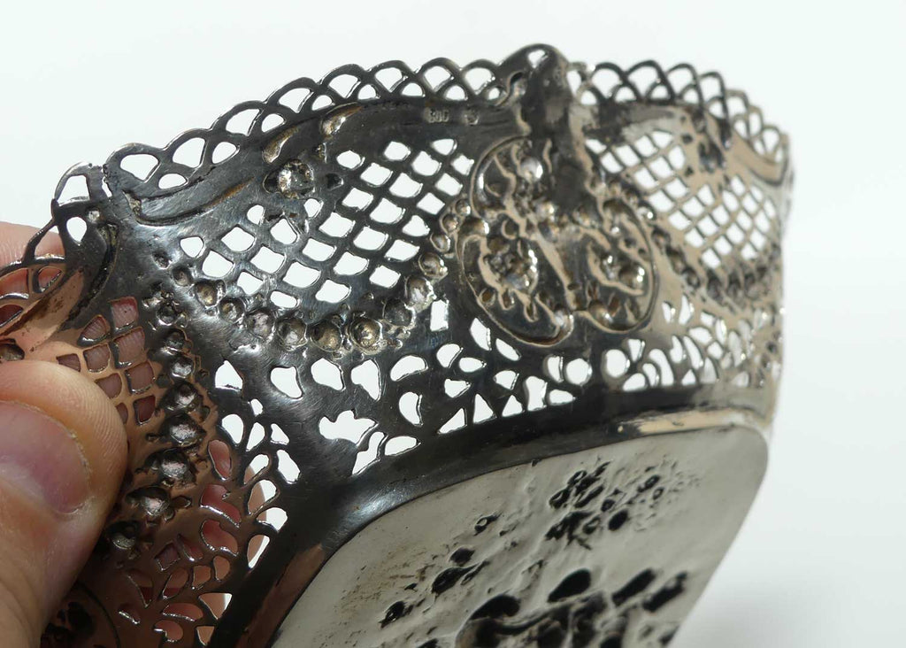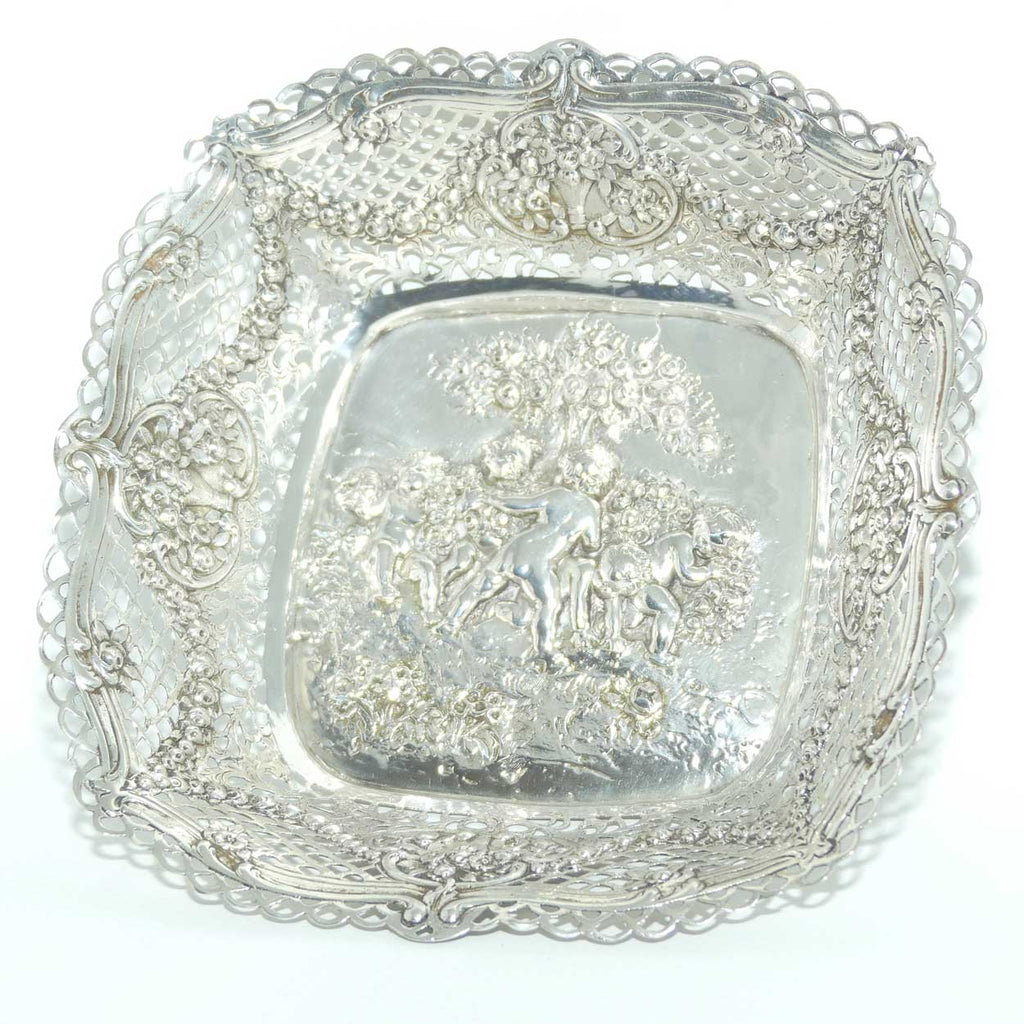German 800 Silver beautiful reticulated dish depicting Putti at Play