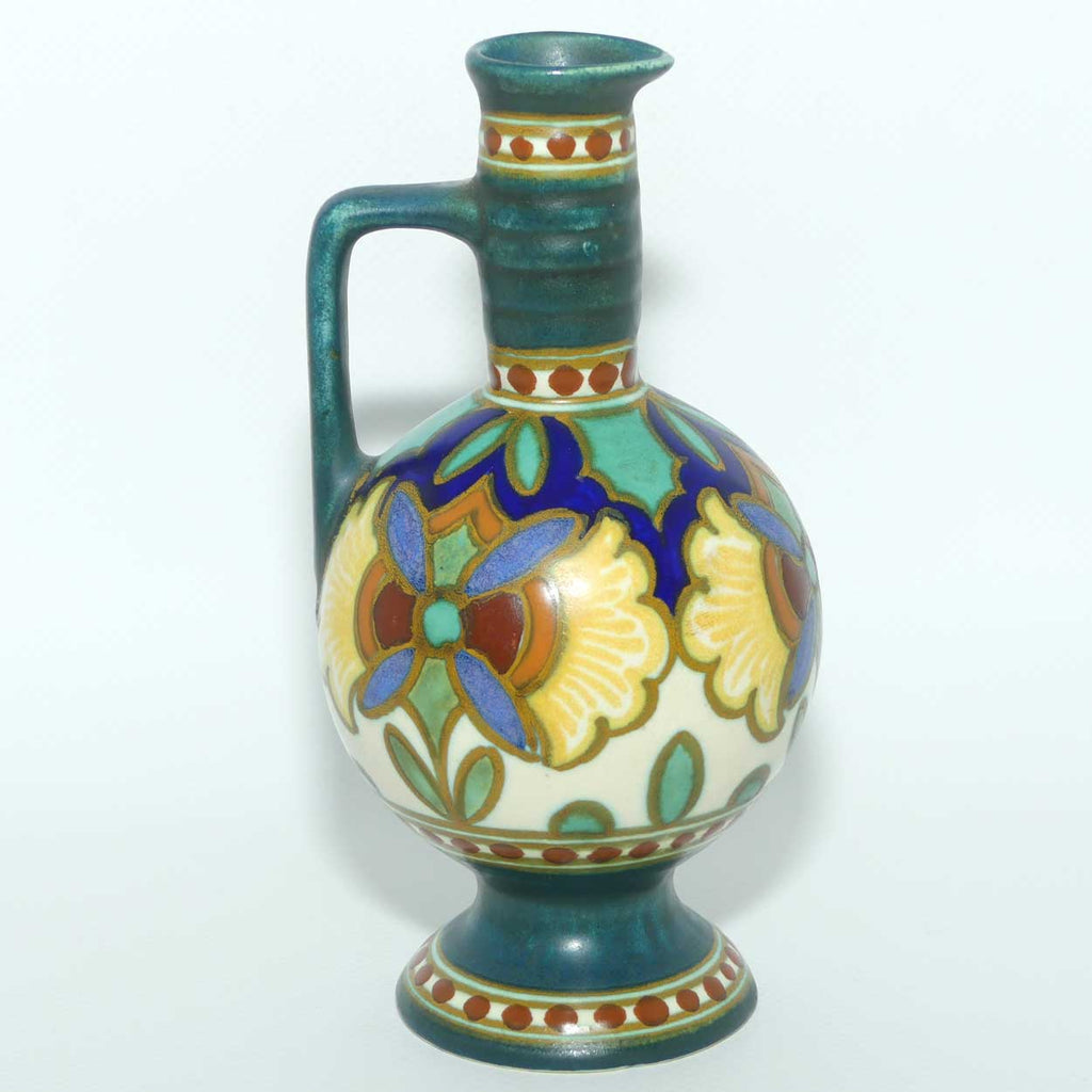 Manufactured by the Zuid-Holland factory in Gouda, one of the leading matte-glaze ceramics makers in the first half of the 20th century. From 1908, NV Koninklijke Plateelbakkerij Zuid-Holland [Gouda] innovated with a matt glaze known as “matt plateel.” Introduced at the Leipziger Messe in 1910 and the San Francisco World Exhibition in 1915, these decorative objects drew inspiration from ancient Greek and Persian patterns and were given exotic names like Rhodian, Damascus, Salak and Purdah. Matt plateel marked a transition away from Art Nouveau, which declined in popularity in the early 20th century. Production continued in Gouda until the mid-20th century.