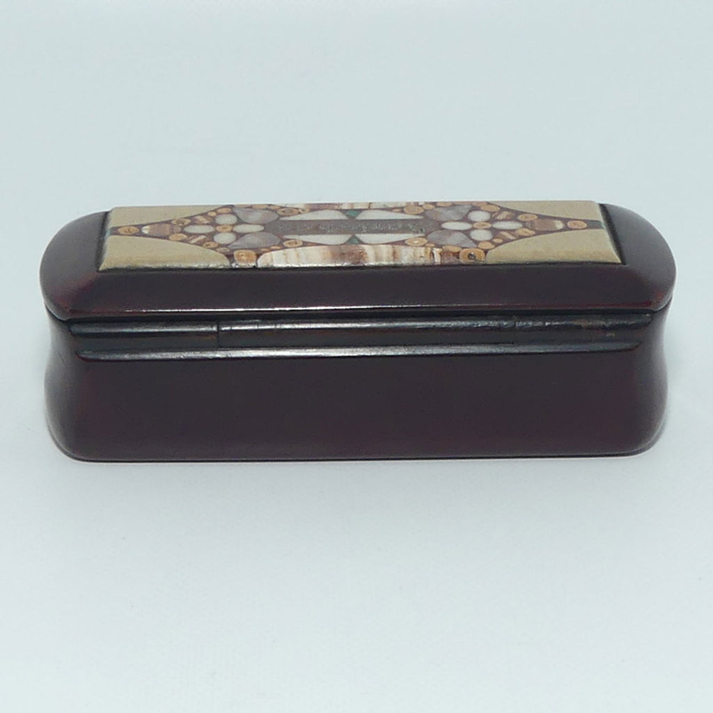 The box body is an early resin or bakelite, the lid stone [Pietra Dure]