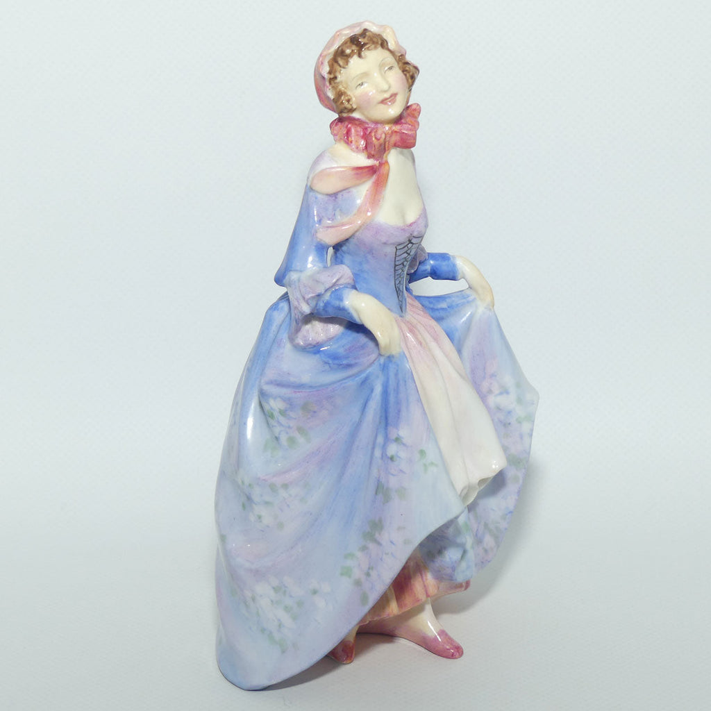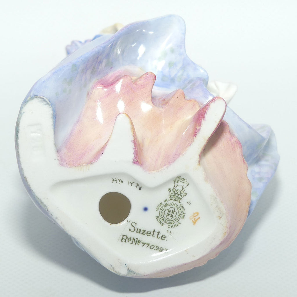 A superb Leslie Harradine designed Royal Doulton figure sees Suzette in a fine Flowered Lavendar Dress [one of the harder to find examples of the many colourways of this early figurine]