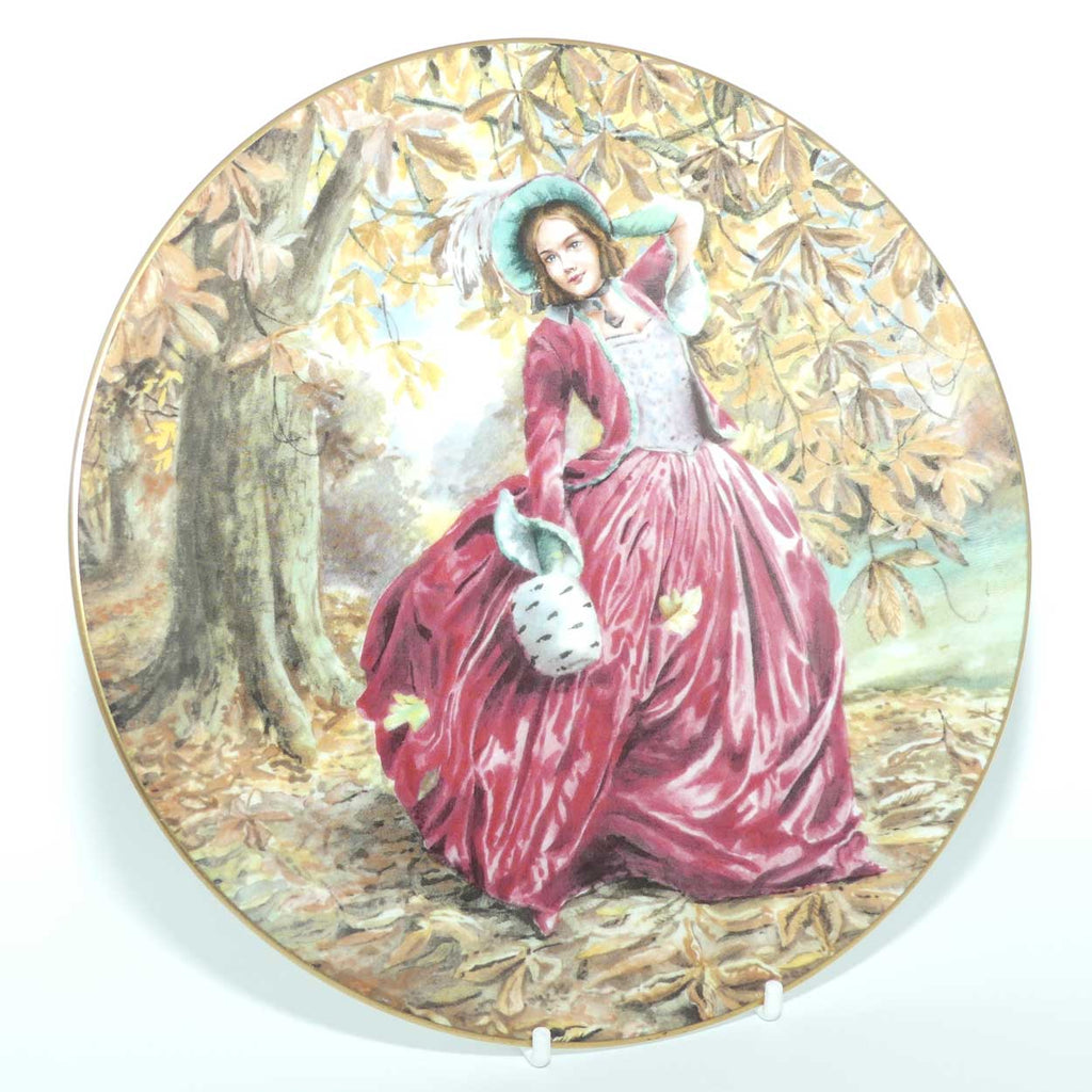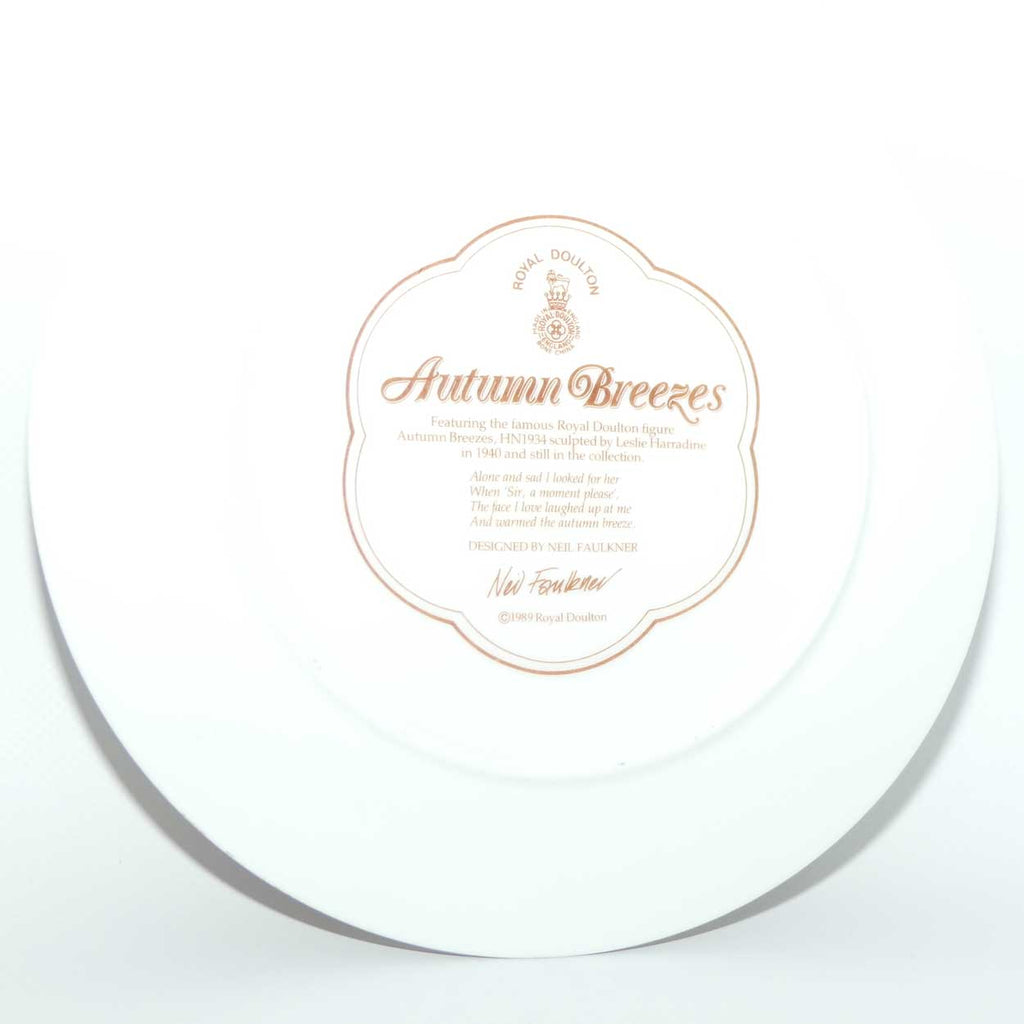 This Royal Doulton plate, designed by Neil Faulkner, featuring the famous Royal Doulton figure Autumn Breezes sculpted by Leslie Harradine in 1940 - was designed to be displayed as a companion to the iconic figurine.