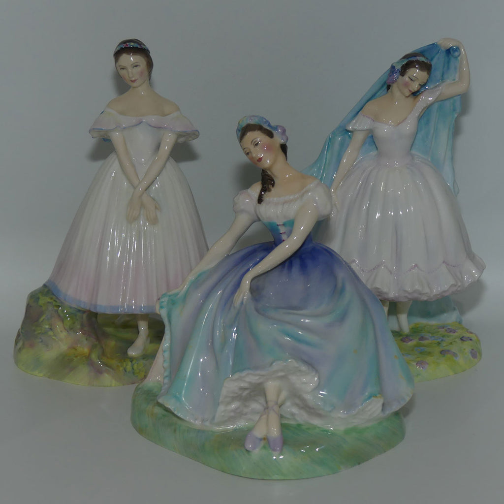 Royal Doulton figure set of 3 figures of a Ballet theme by renowned designer (Margaret) Peggy Davies