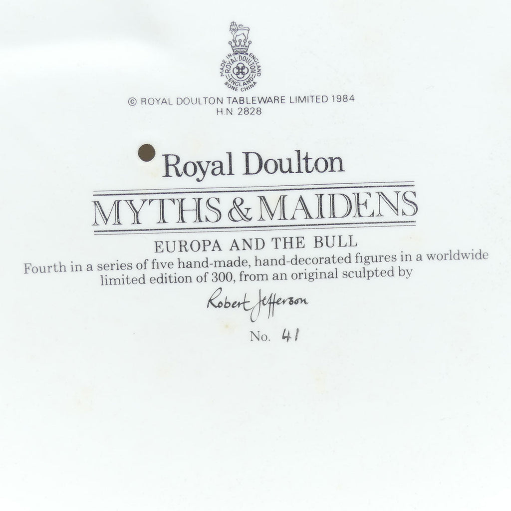 The model passes into the hands of Royal Doulton's highly skilled painters who apply colours by hand, carefully checking to ensure that it remains faithful to the spirited character of Jefferson's original. This decorating includes embellishments of pure 22 carat gold. At progressive stage of painting and glazing the figure is refired several times until, almost magically, it takes on the sprit of the original.