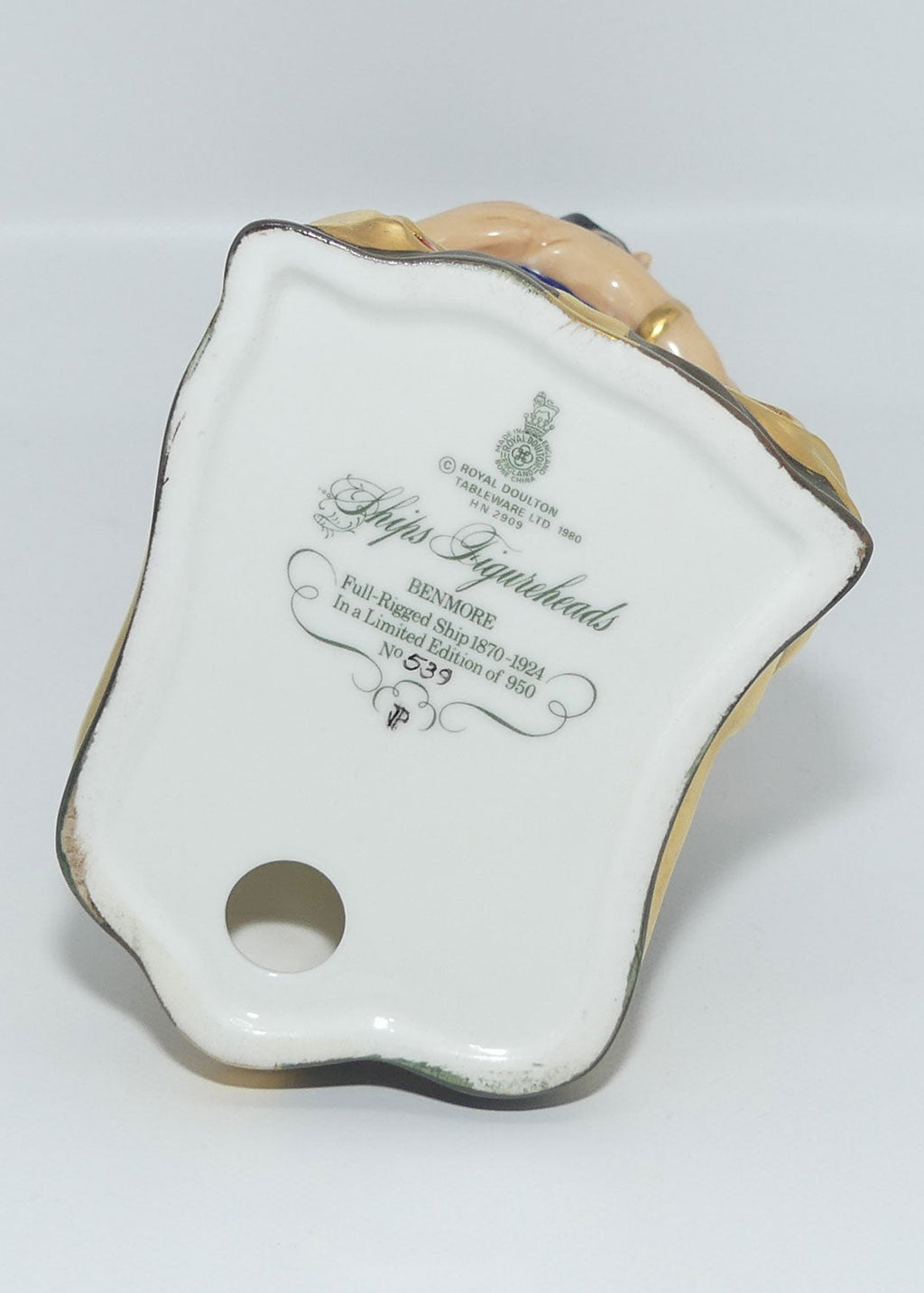 Originally released as pairs in 1980, the collection began with Benmore and H.M.S. Ajax, followed by Nelson and Lalla Rookh. The Chieftain and Pocahontas were the third pair released and Mary Queen of Scots and Hibernia completed this prestigious collection in 1983. The Ships Figureheads Series represented a new genre for Royal Doulton. The series of eight models is characterized by meticulous detail, historical accuracy and represent actual figureheads preserved in museums and dockyards around the world