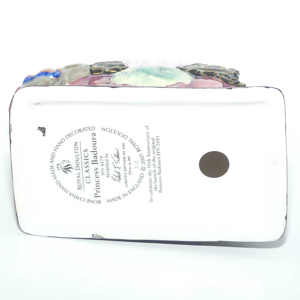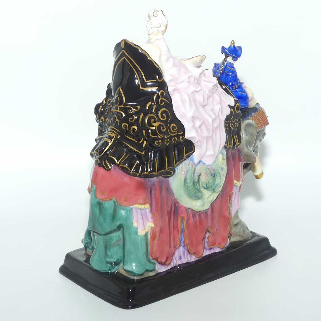 The original version, standing an impressive 50cms tall, Princess Badoura HN2081, was the most expensive piece offered in the Doulton catalog and was made to special order for nearly 40 years. Only the most experienced ceramic artists were entrusted with the decoration, which required over 160 hours of intricate painting and five kiln firings before gilders added the final embellishments of 22 carat gold. As the full size version was out of reach of collectors in the main, the smaller Limited Edition version HN4179 was modelled by Robert Tabbenor in 2001 - and resonated with many collectors as they could now own their covetted piece!