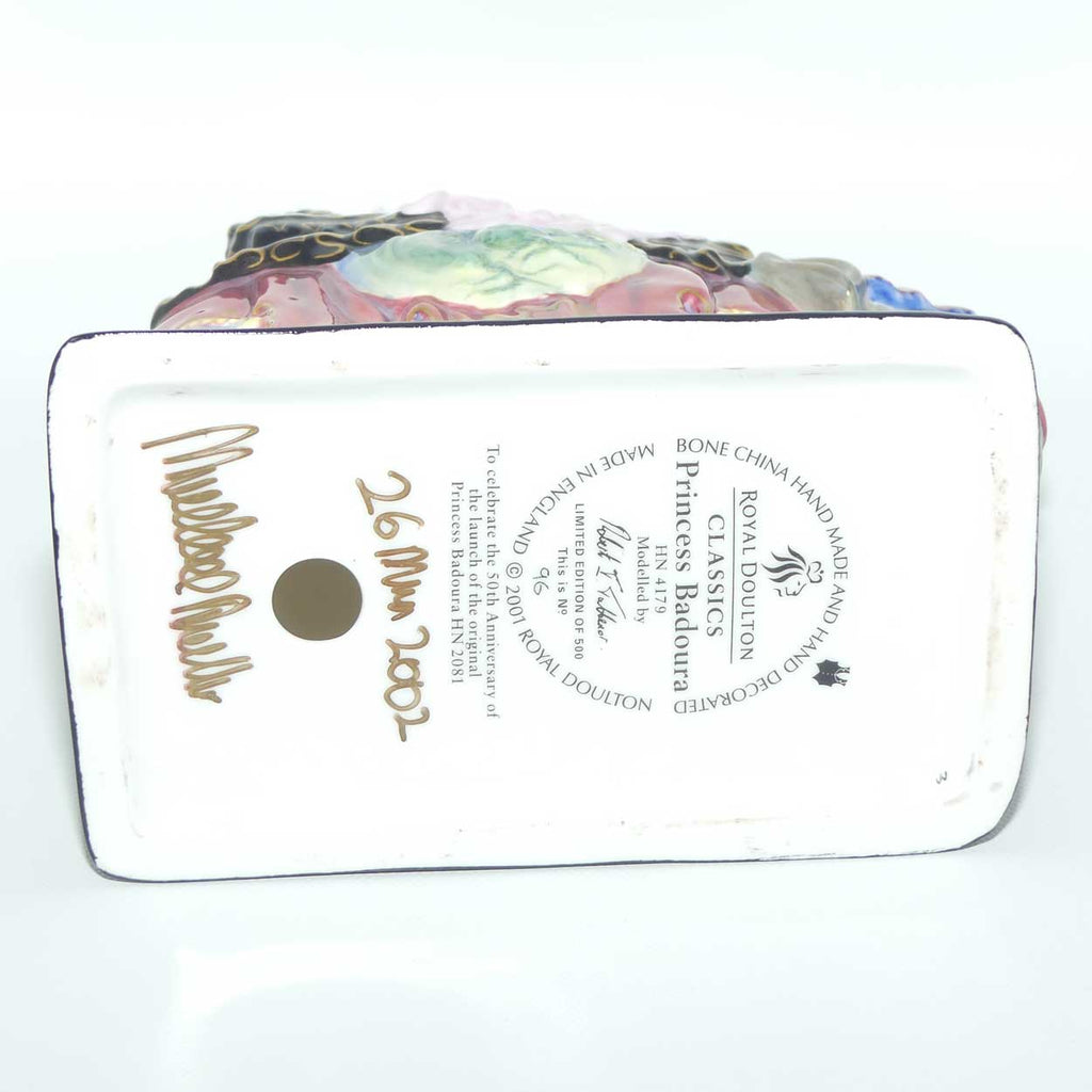 The original version, standing an impressive 50cms tall, Princess Badoura HN2081, was the most expensive piece offered in the Doulton catalog and was made to special order for nearly 40 years. Only the most experienced ceramic artists were entrusted with the decoration, which required over 160 hours of intricate painting and five kiln firings before gilders added the final embellishments of 22 carat gold. As the full size version was out of reach of collectors in the main, the smaller Limited Edition version HN4179 was modelled by Robert Tabbenor in 2001 - and resonated with many collectors as they could now own their covetted piece!