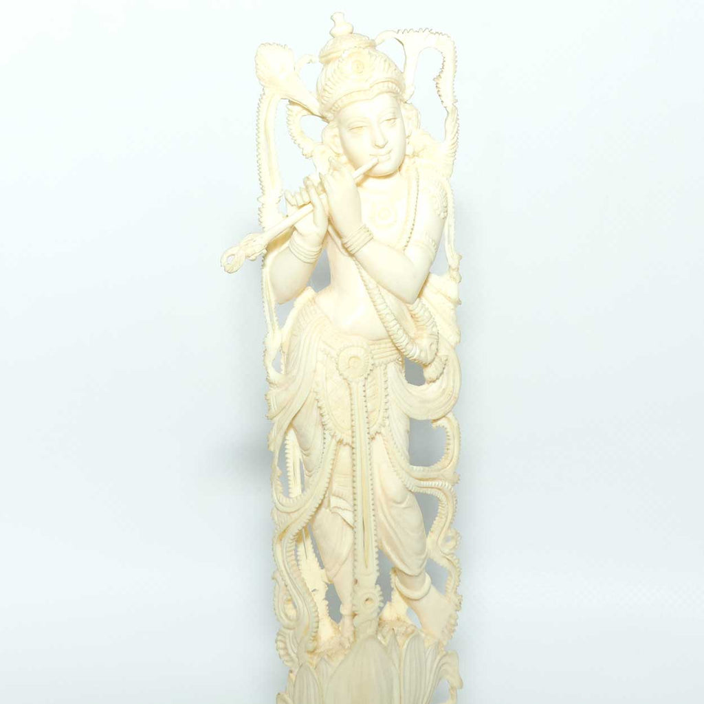 Superbly carved Indian Carved Ivory figure of Krishna, atop a Lotus with Flute