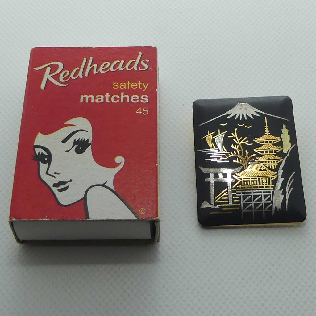 Japanese Amita Damascene Mt Fuji brooch