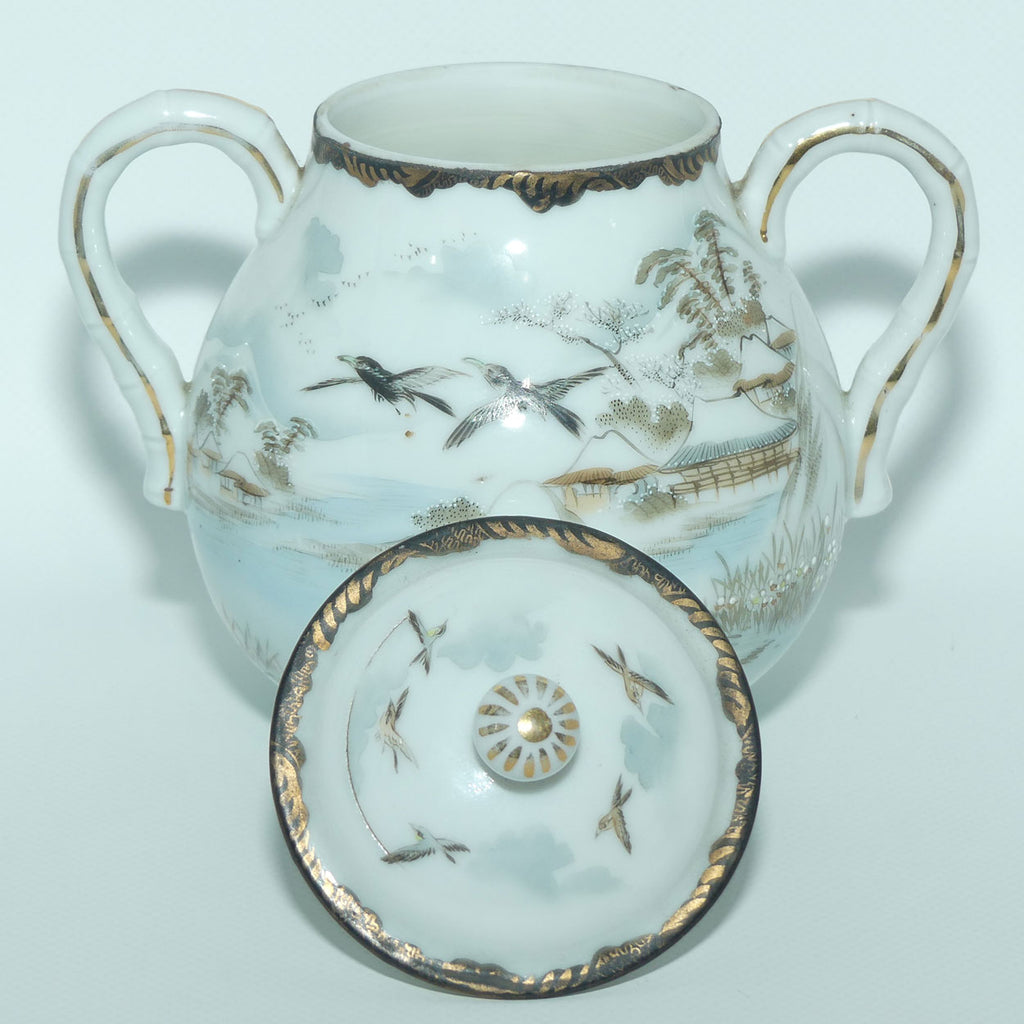 Japanese Egg Shell finely decorated Kutani lidded sugar bowl
