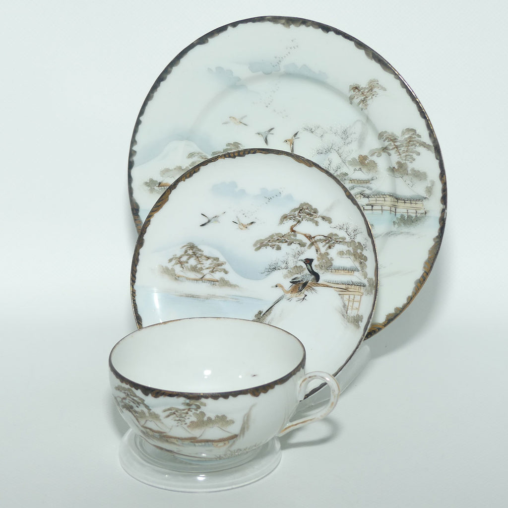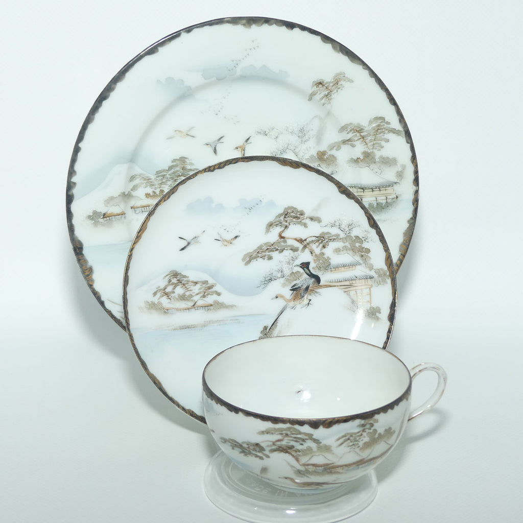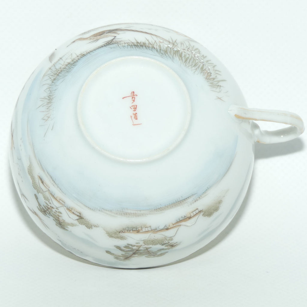 Japanese Egg Shell finely decorated Kutani tea trio
