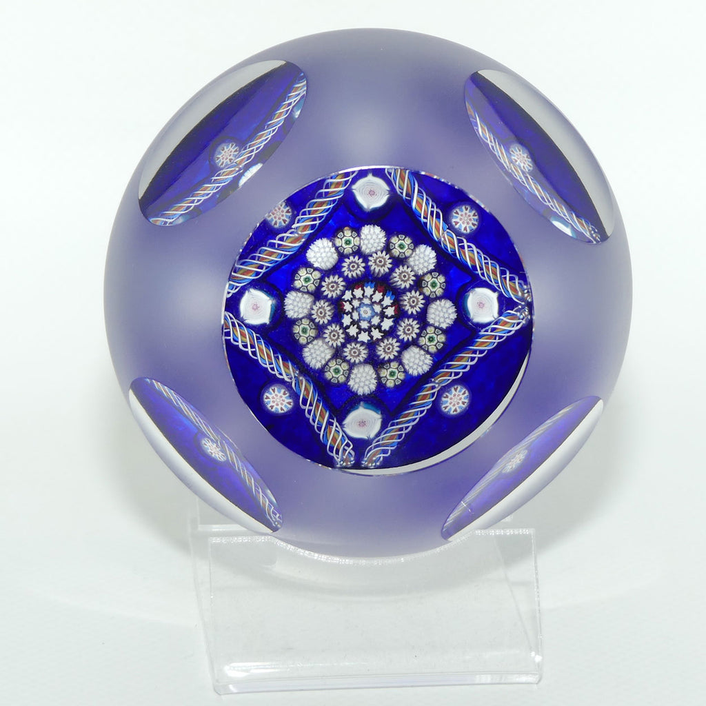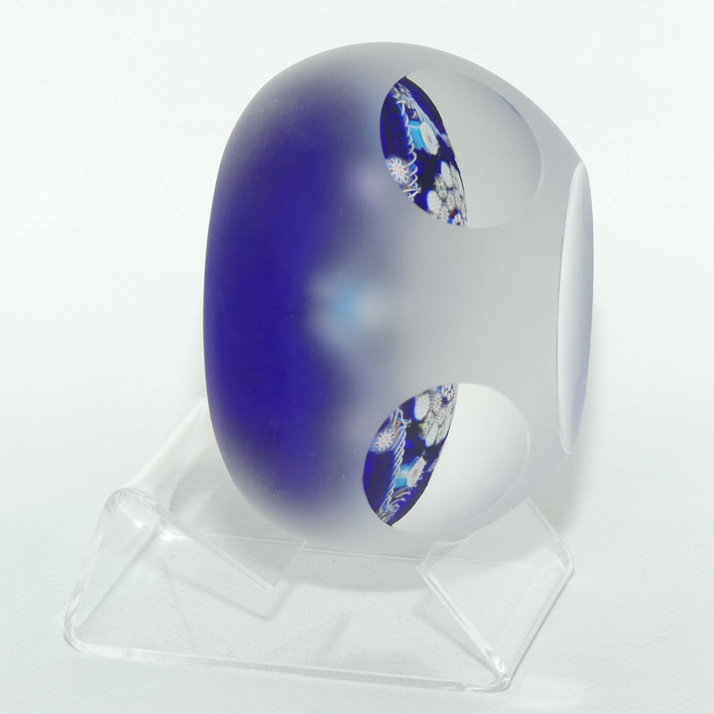 John Deacons Scotland Clichy Square Facetted and Sandblasted Magnum paperweight (Blue)