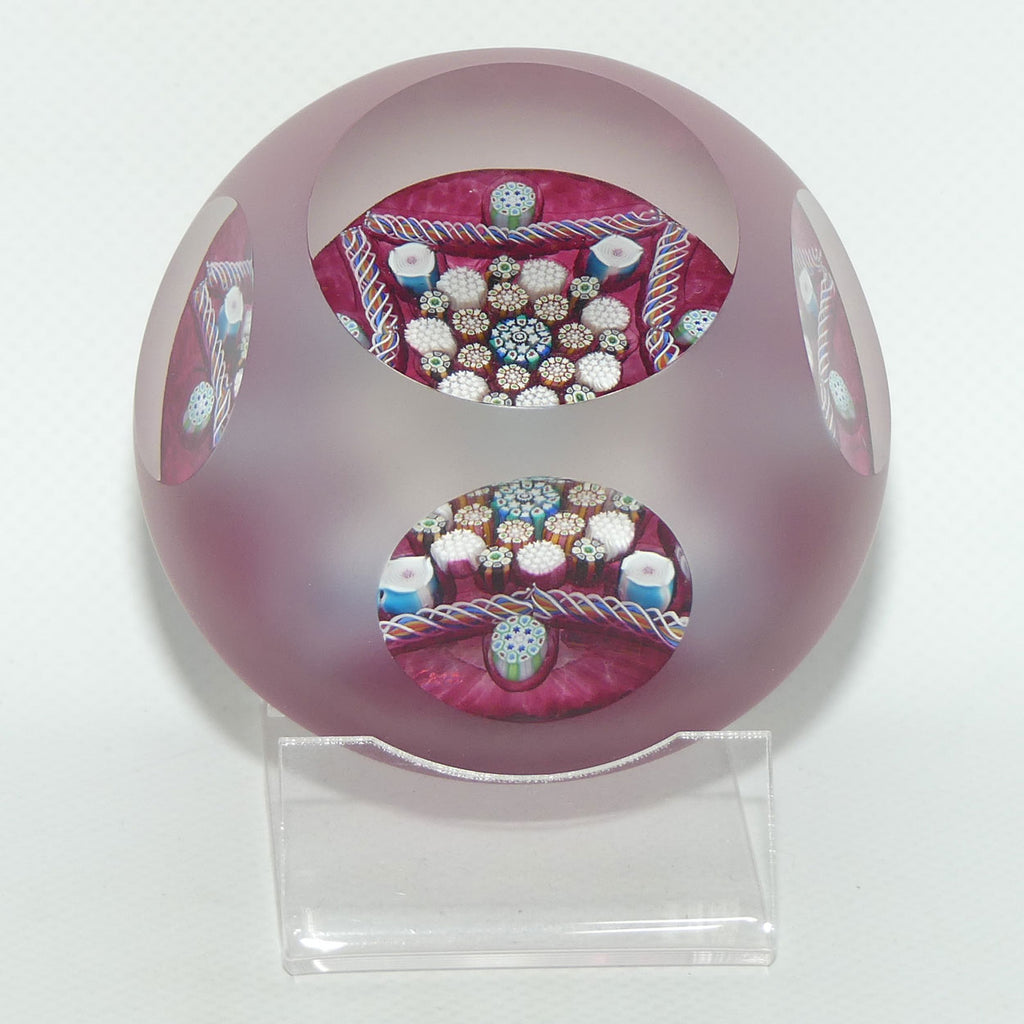 John Deacons Scotland Clichy Square Facetted and Sandblasted Magnum paperweight (Ruby)