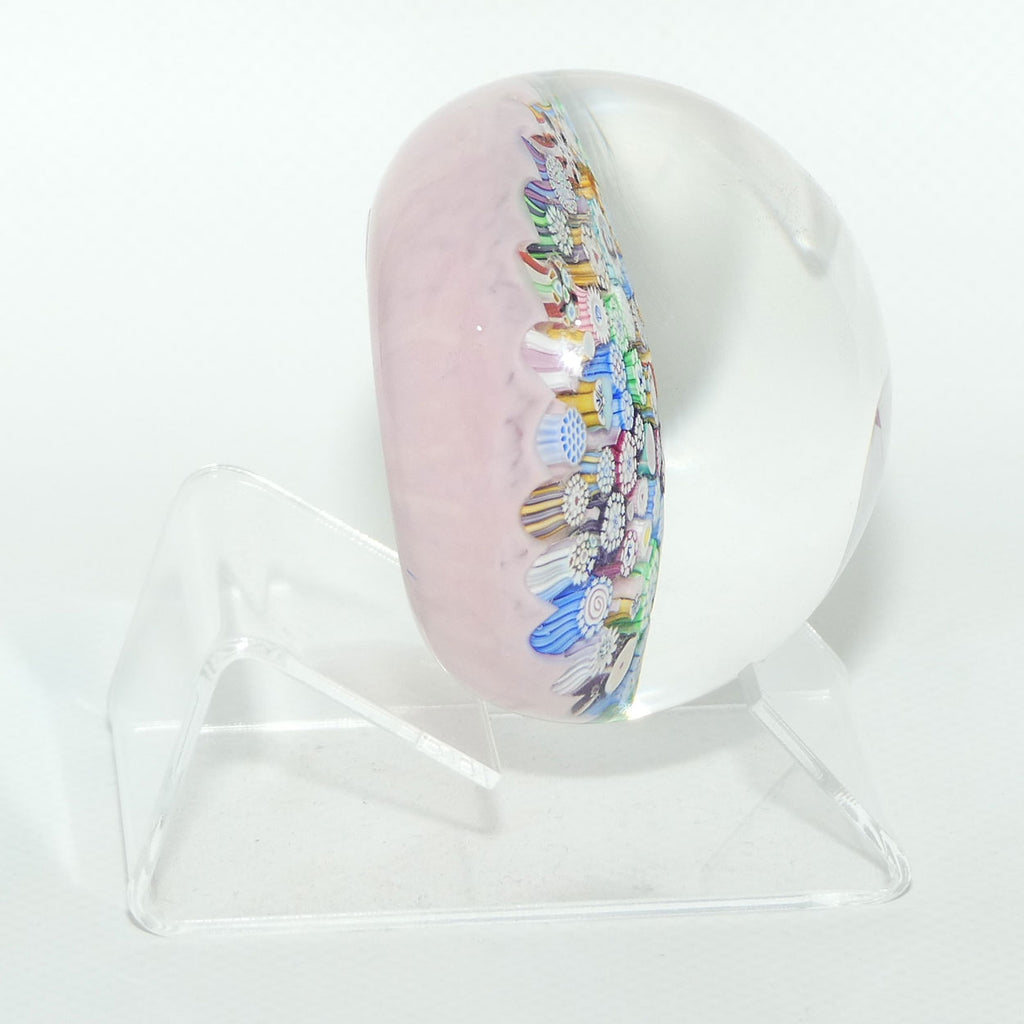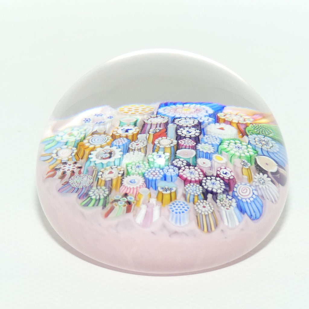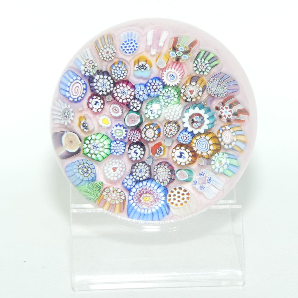 The canes in this closepack Millefiori weight are all what we call complex canes, when you look closely at the pictures you will see what I mean. It is advanced paperweight making!